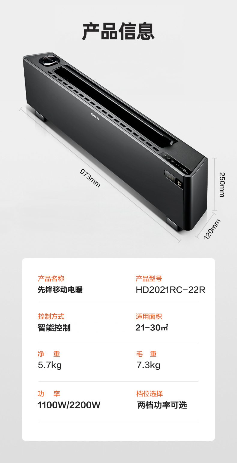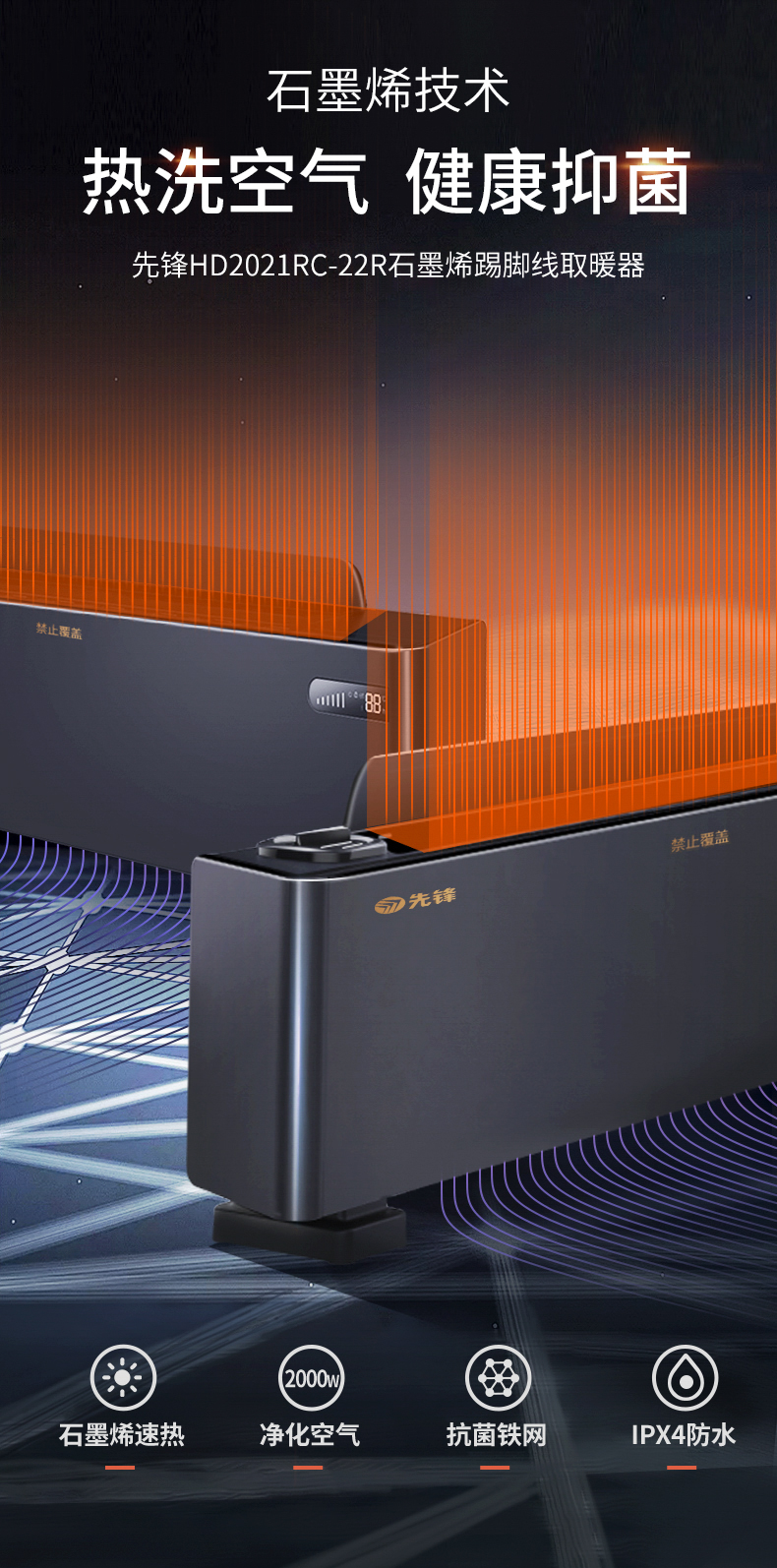 - 商品名称:先锋(Singfun)HD2021RC-22R小火星遥控防水石墨烯踢脚线取暖器 加湿净化电暖器 全屋速热电暖气家用