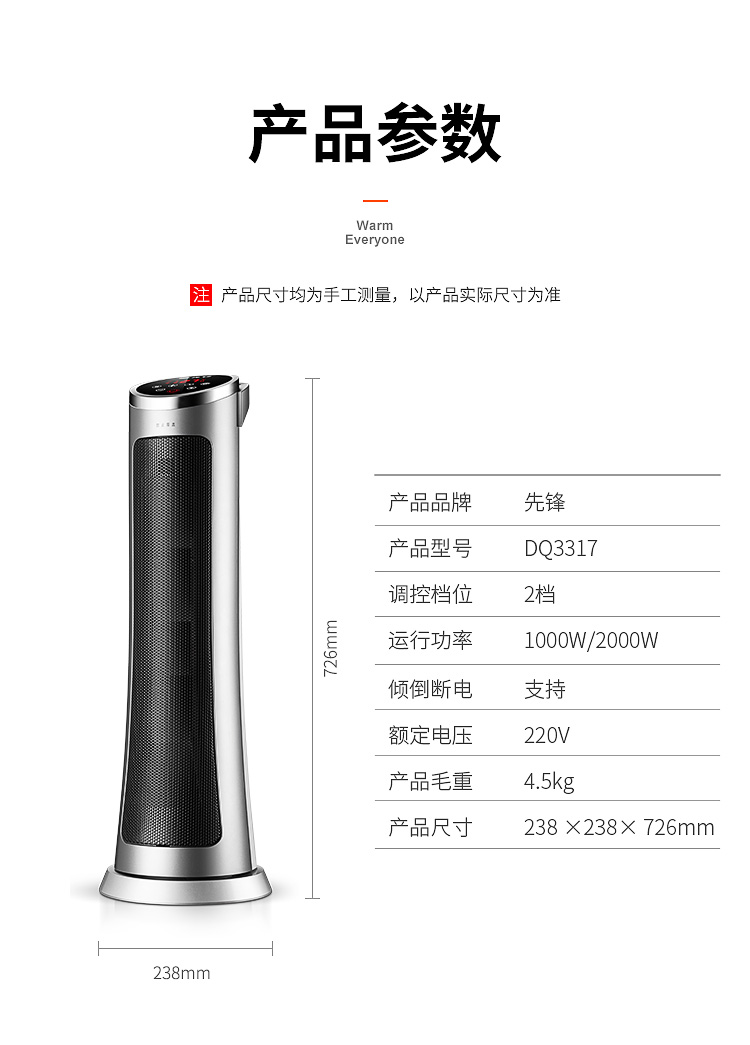 - 商品名称:先锋(Singfun)HN412PS-20R(DQ3317)取暖器 暖风机 电暖器 家用电暖气 加热器 可摇头 塔式遥控可定时
