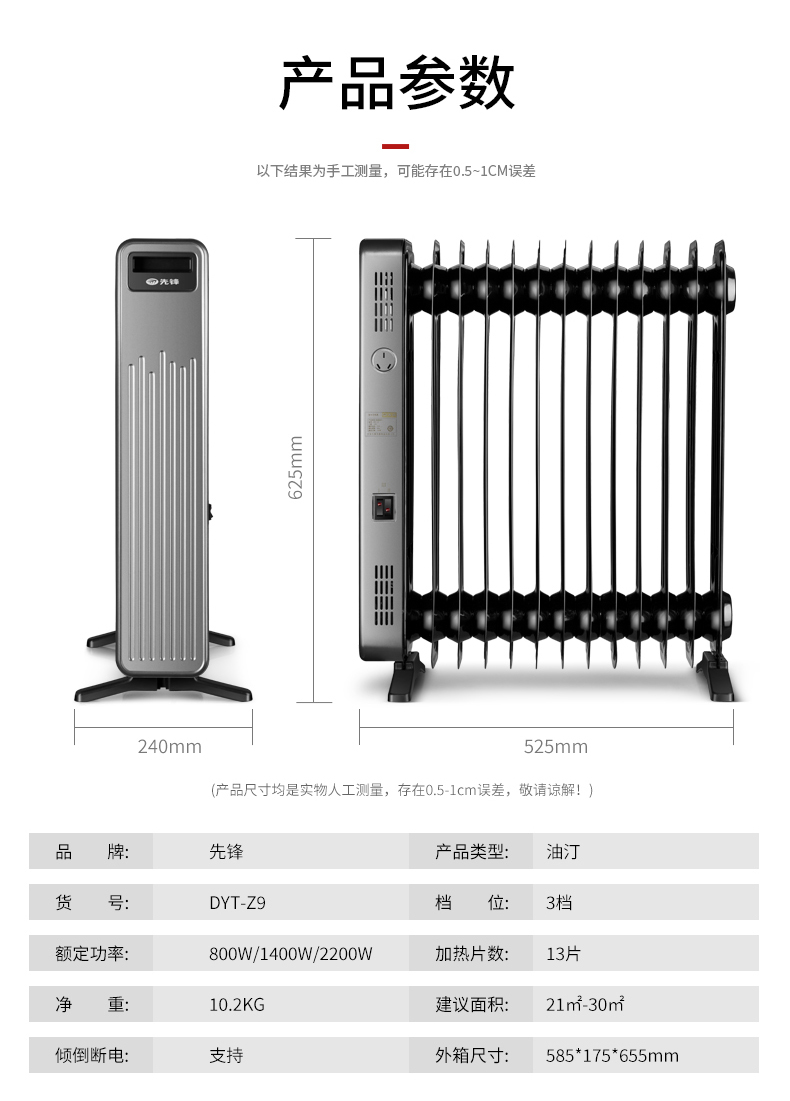 商品名称:先锋(Singfun)DYT-Z9 取暖器电暖器电暖气家用电热油汀节能省电13片全屋取暖加厚暖气片