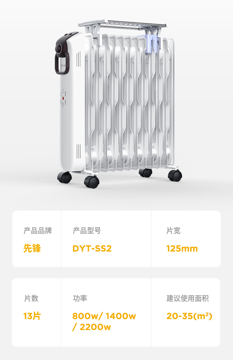 - 商品名称:先锋(Singfun)DYT-SS2取暖器 电暖器 电暖气家用 电油汀 13片热浪专利电热器 节能省电 干衣加湿