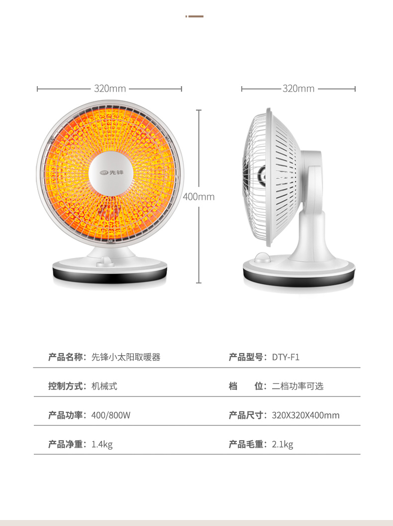 - 商品名称:先锋(Singfun)DTY-F1 取暖器电暖器小太阳电热扇烤火炉反射型电暖气DTY-F1