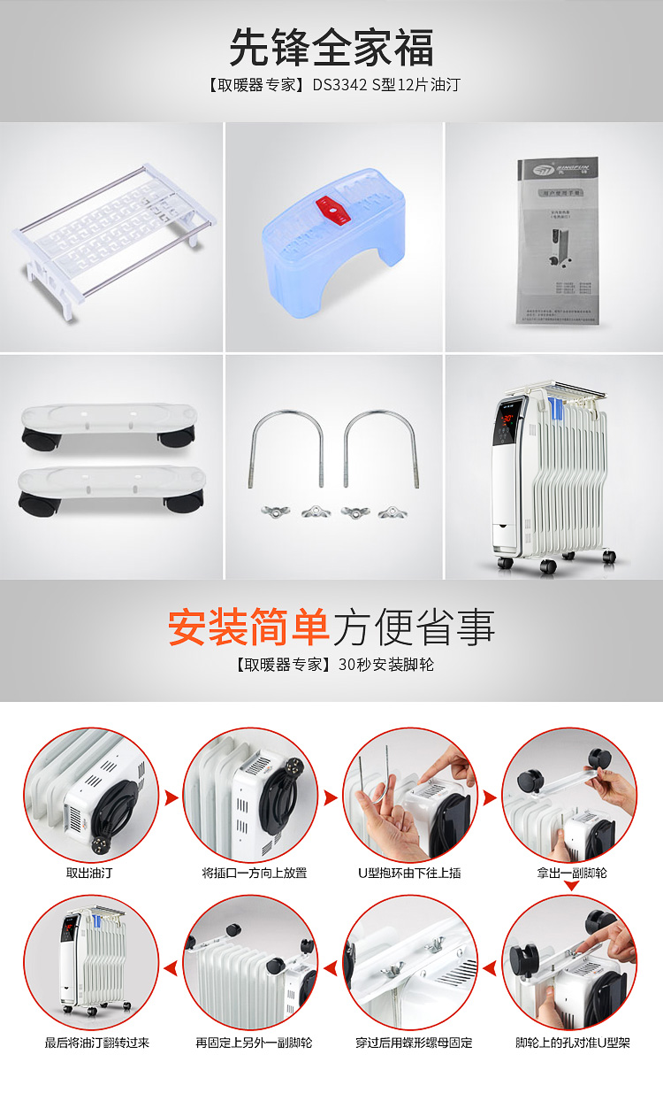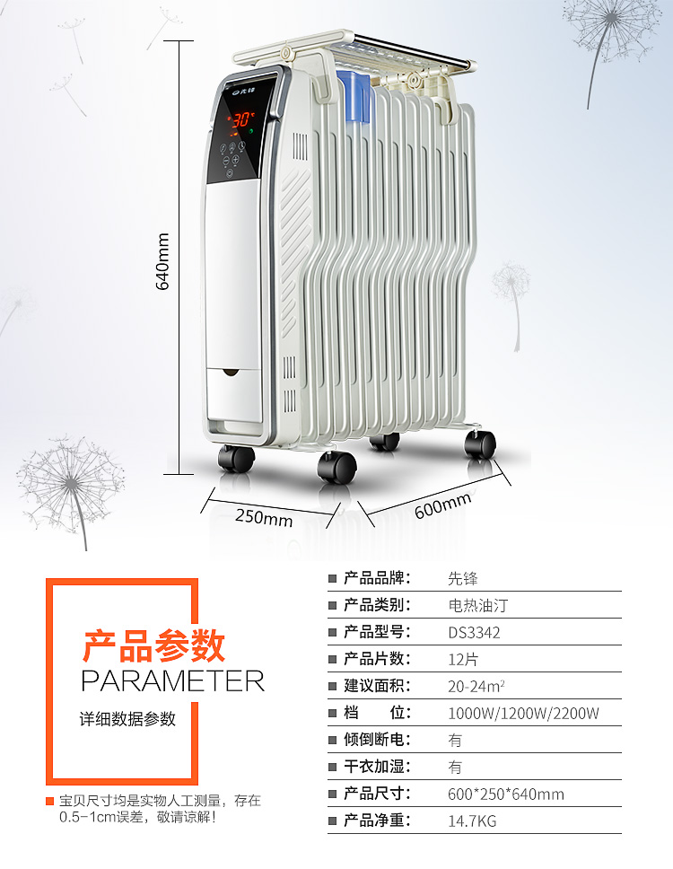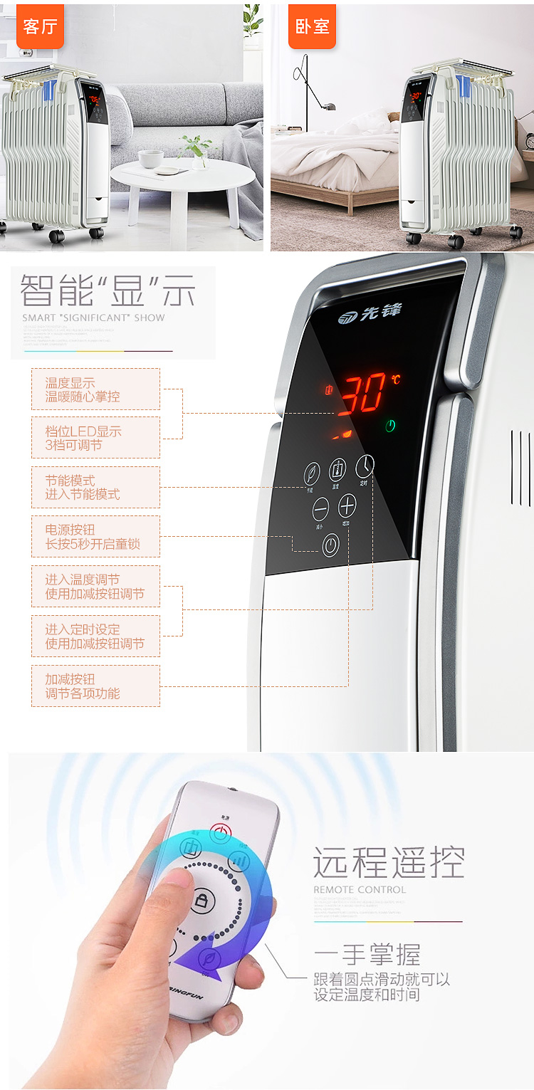 - 商品名称:先锋(Singfun)CY43SS-12 远程遥控 LED屏 智能取暖器/家用电暖器/电暖气/12片S型电热油汀