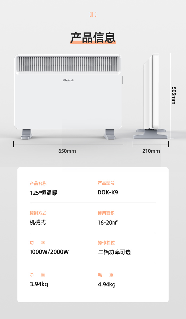 - 商品名称:先锋(Singfun)DOK-K9取暖器家用/暖风机//电暖器/欧式快热炉/移动地暖/电暖气 速热静音烤火炉