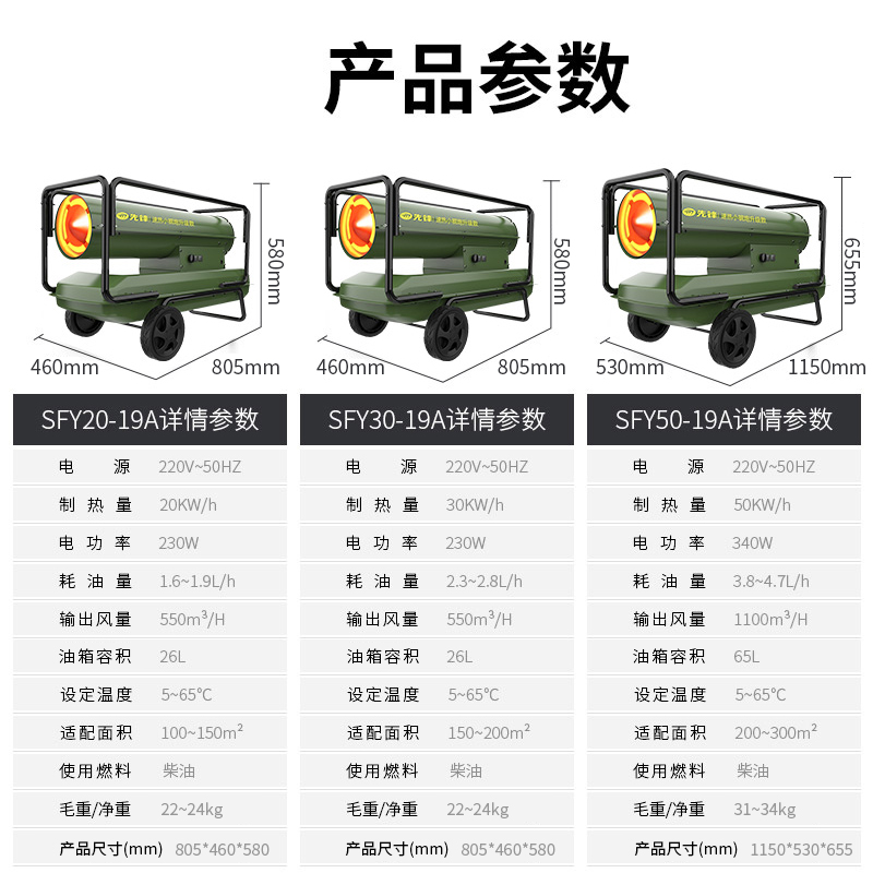 - 商品名称:先锋(SINGFUN)SFY30-19A 工业取暖器 燃油暖风机大功率厂房花棚养殖育雏大棚烘干30KW大热量(150-200㎡)