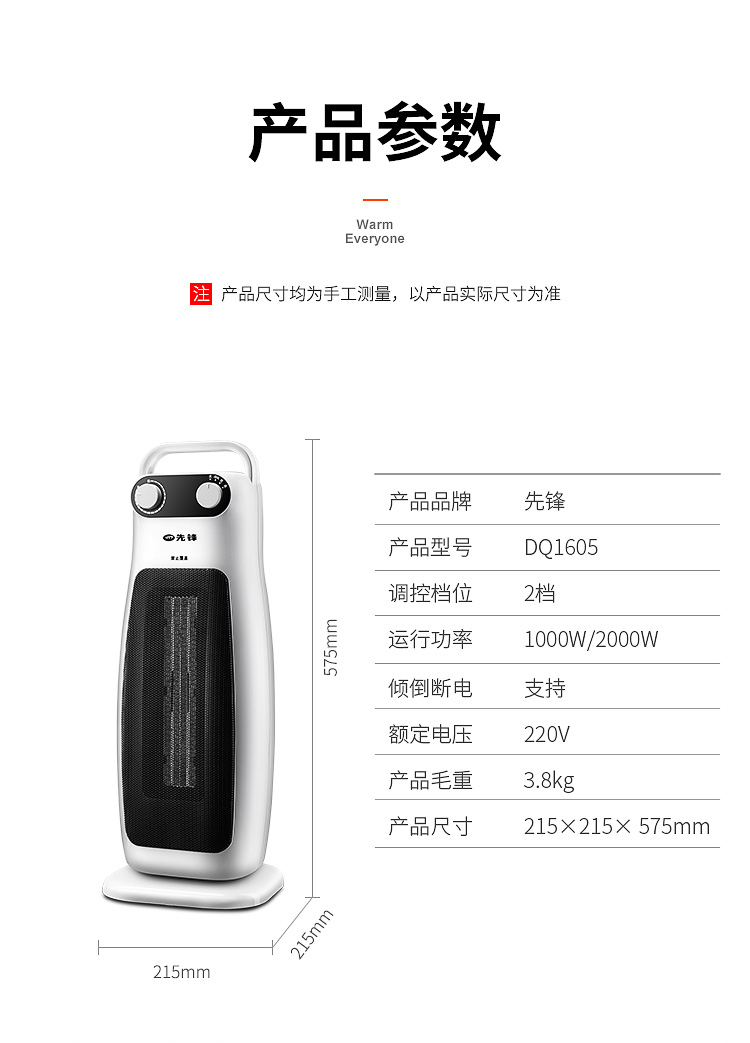 - 商品名称:先锋(Singfun)HN65PS-20(DQ1605)取暖器 塔式暖风机 电暖器家用 塔扇 烤火炉