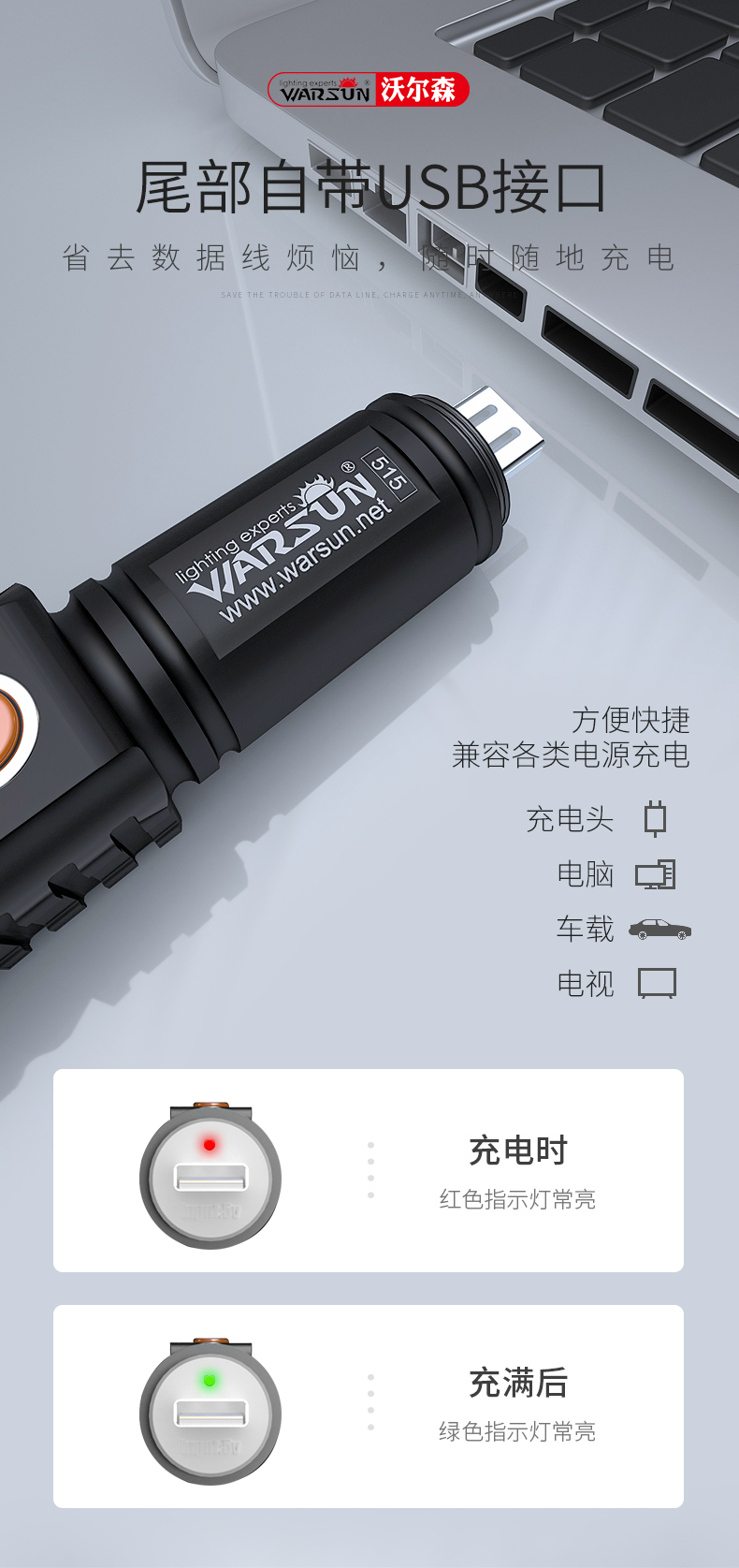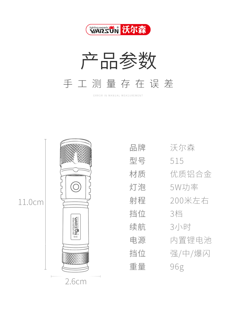 - 商品名称:Warsun LED超亮远射迷你强光手电筒可充电户外照明防水家用超小袖珍微型式 515