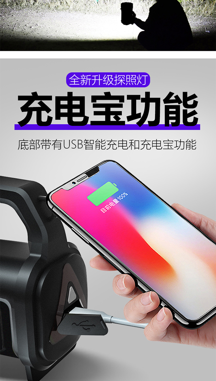 - 商品名称:Warsun沃尔森 H882手电筒led强光探照灯多功能手提灯远射充电式大功率超亮户外野营家用巡逻矿灯