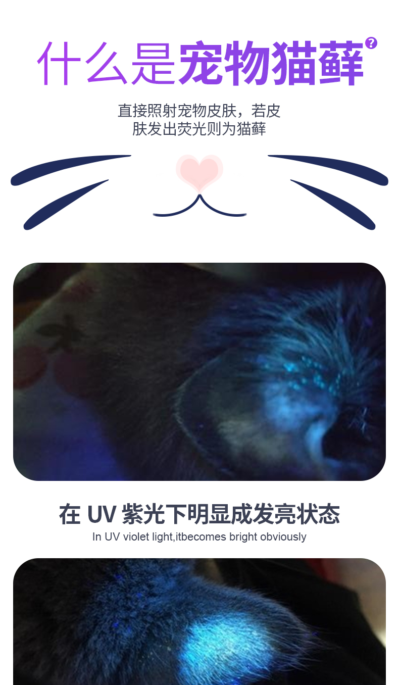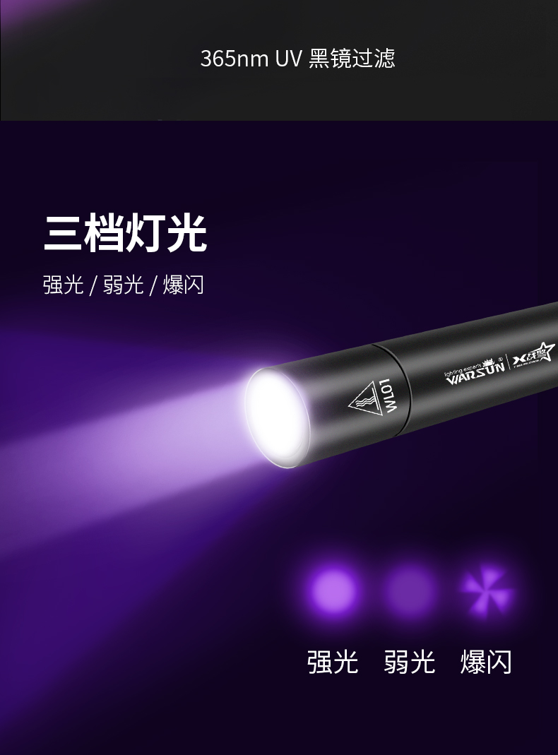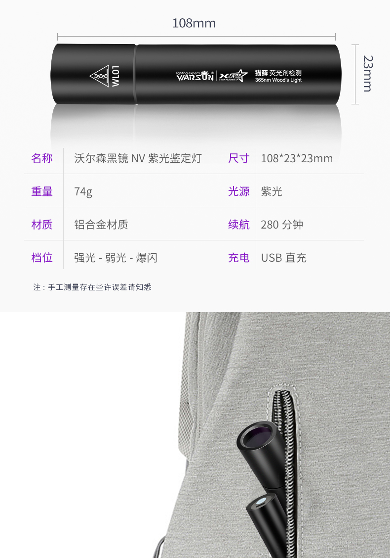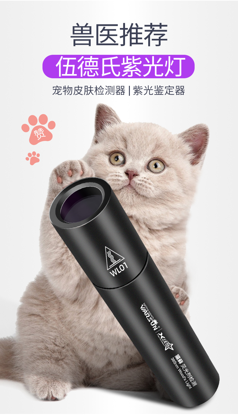 - 商品名称: Warsun沃尔森 WL01 伍德氏灯照猫藓灯宠物紫光手电筒紫外线真菌荧光剂检测猫尿廯灯紫光灯
