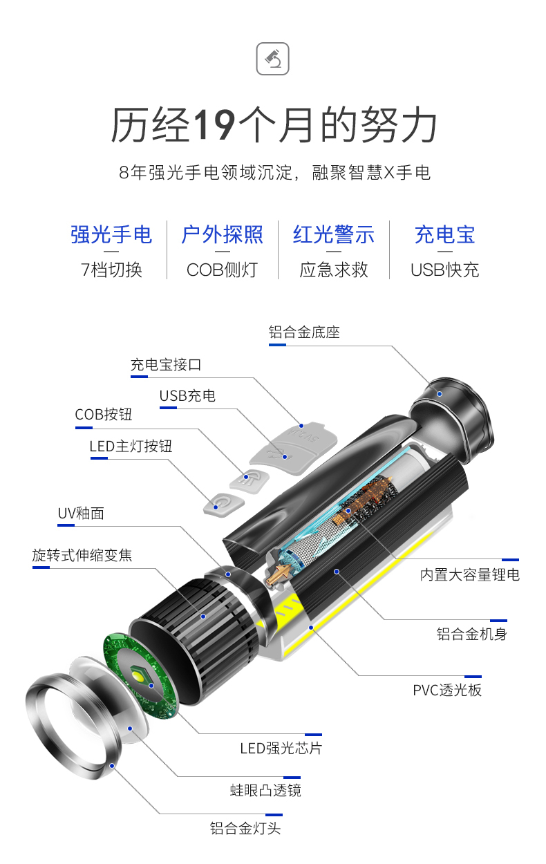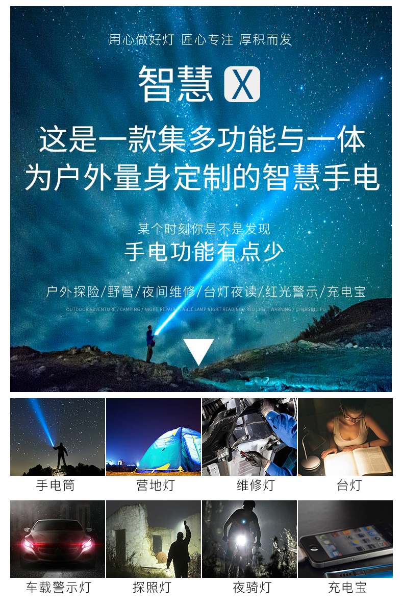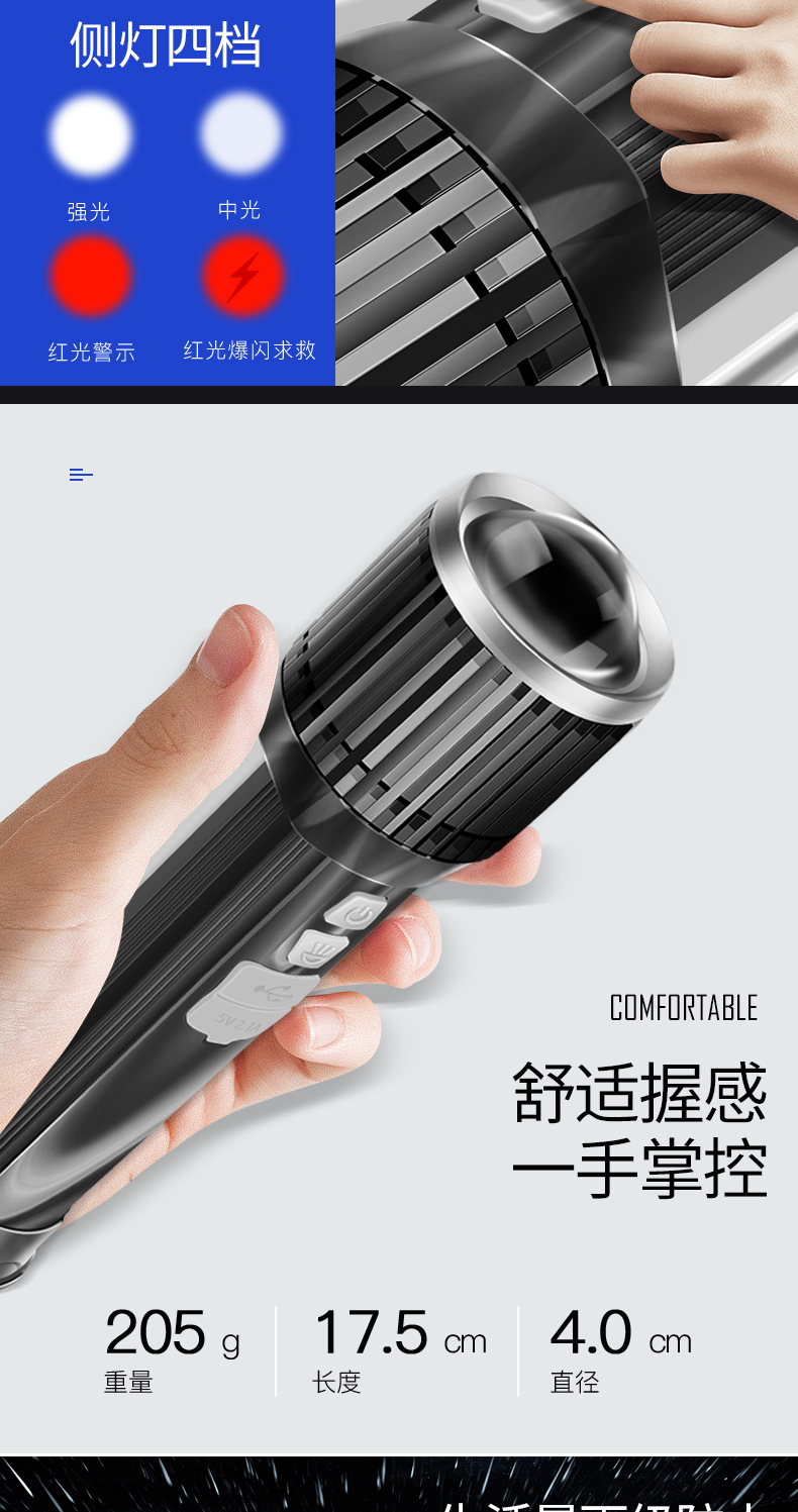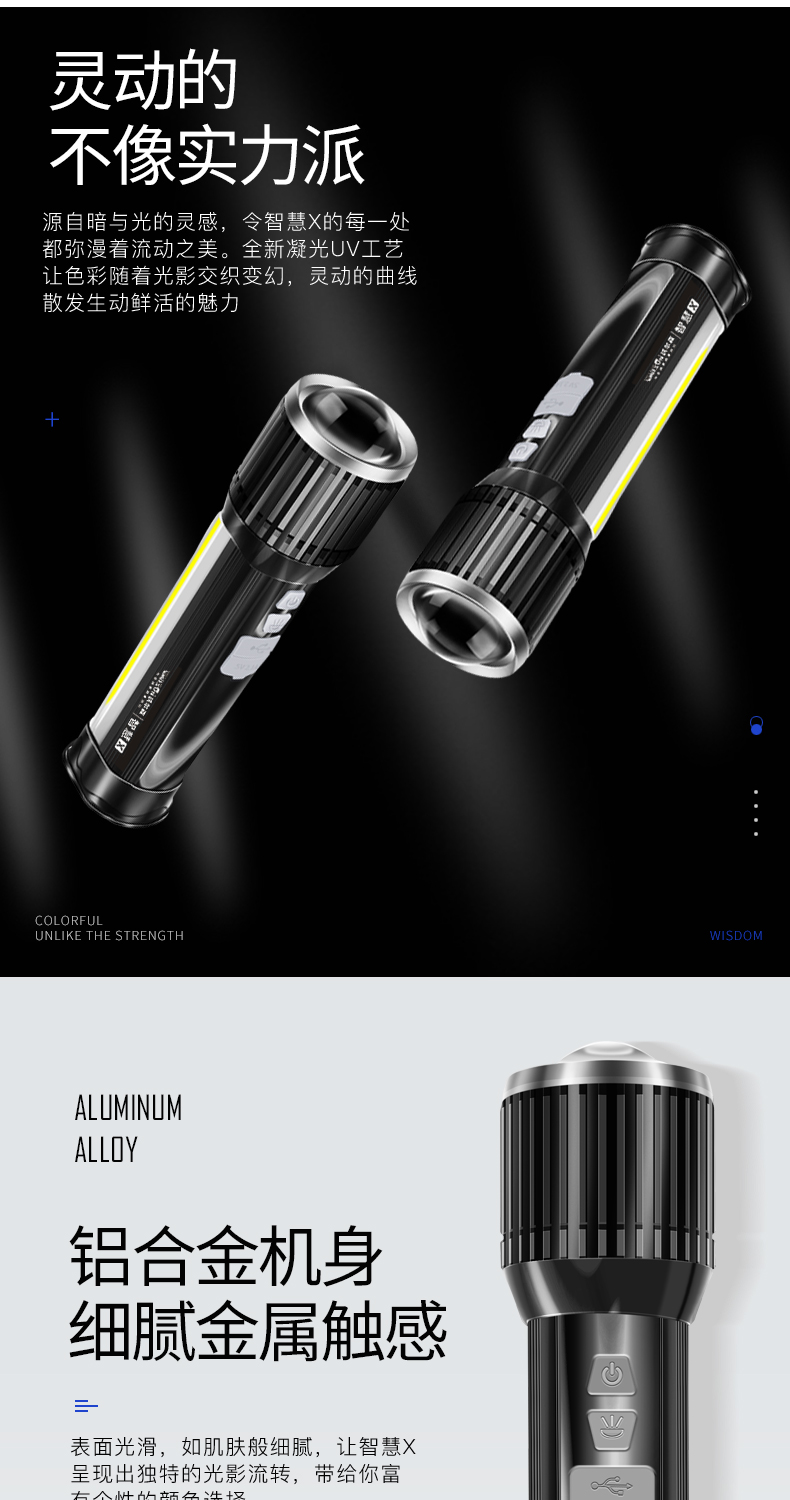 - 商品名称: Warsun沃尔森 智慧X手电筒多功能变焦强光神奇手电可充电超亮远射led非氙气防水探照灯小