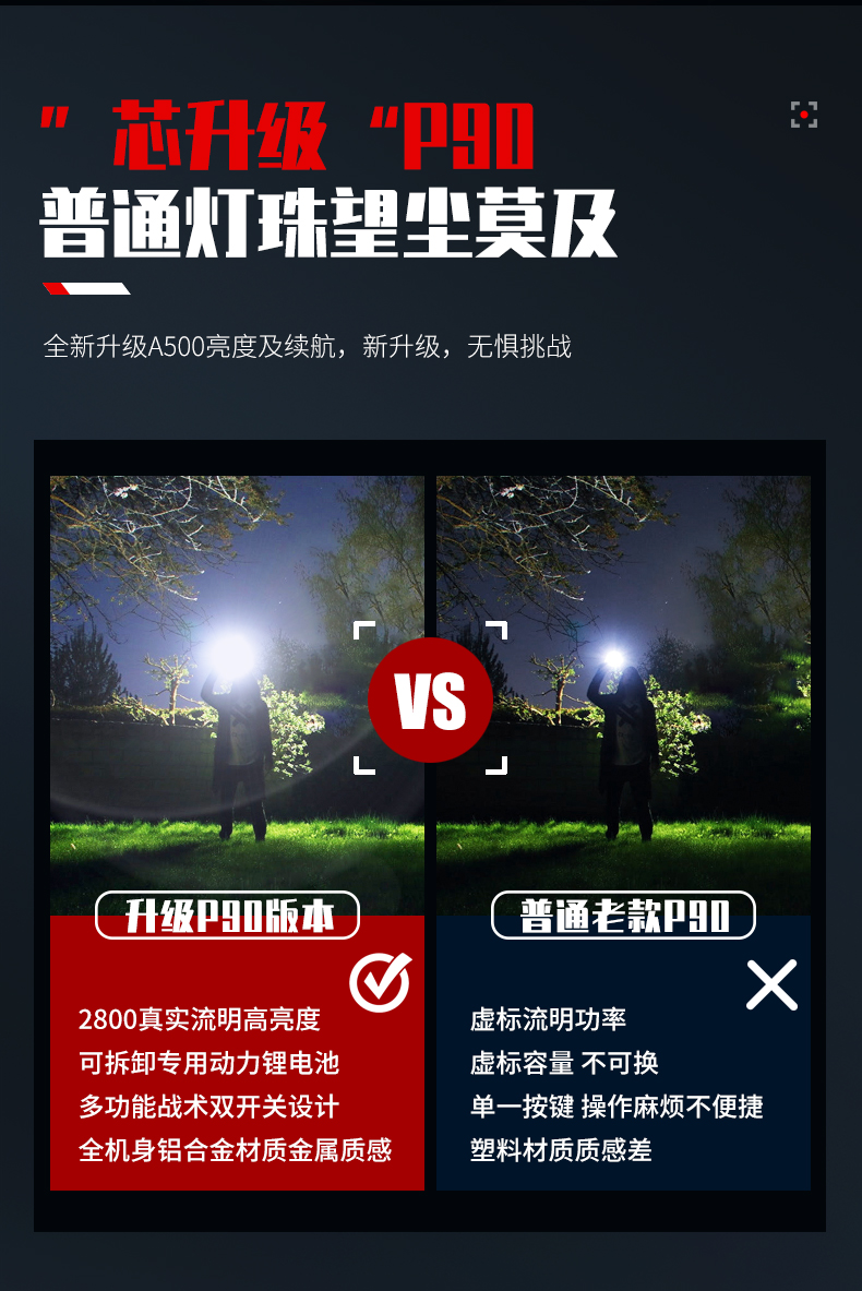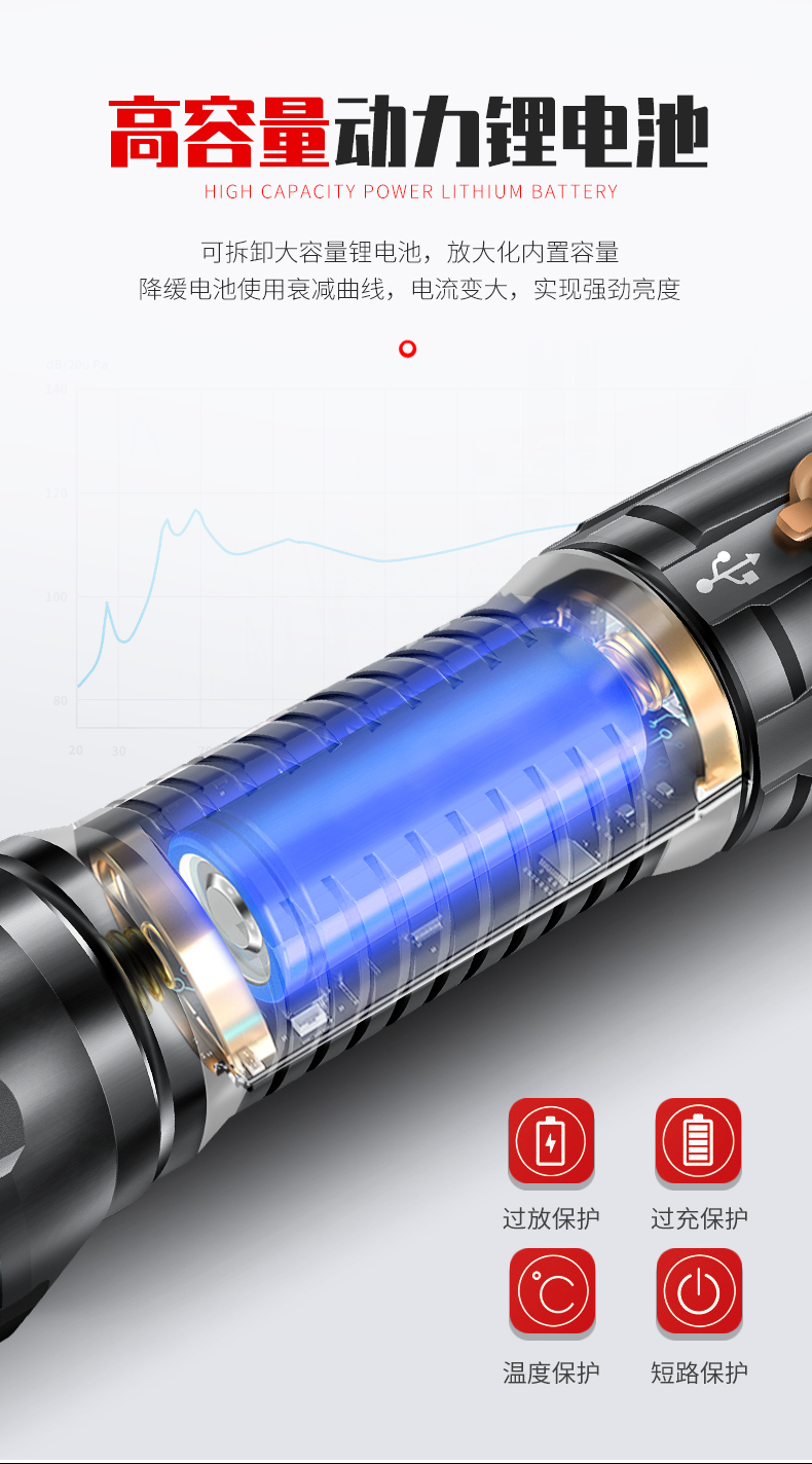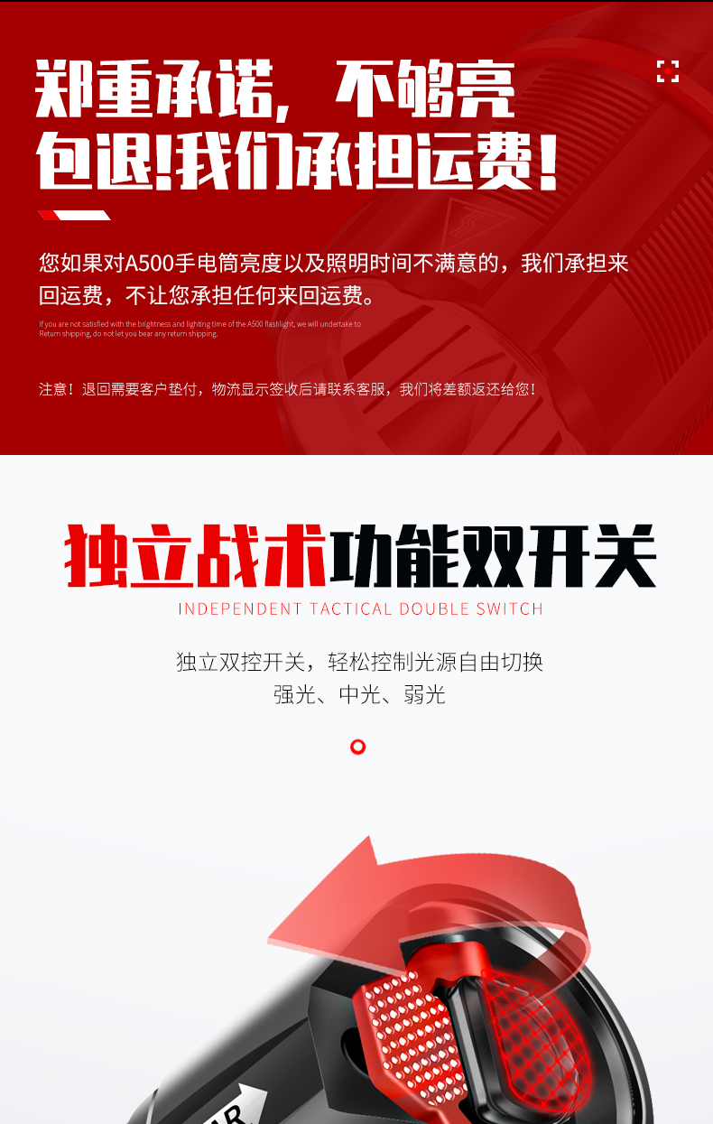 - 商品名称:Warsun沃尔森 A500手电筒多功能定焦强光手电超亮远射led可充电非氙气防水探照灯应急灯