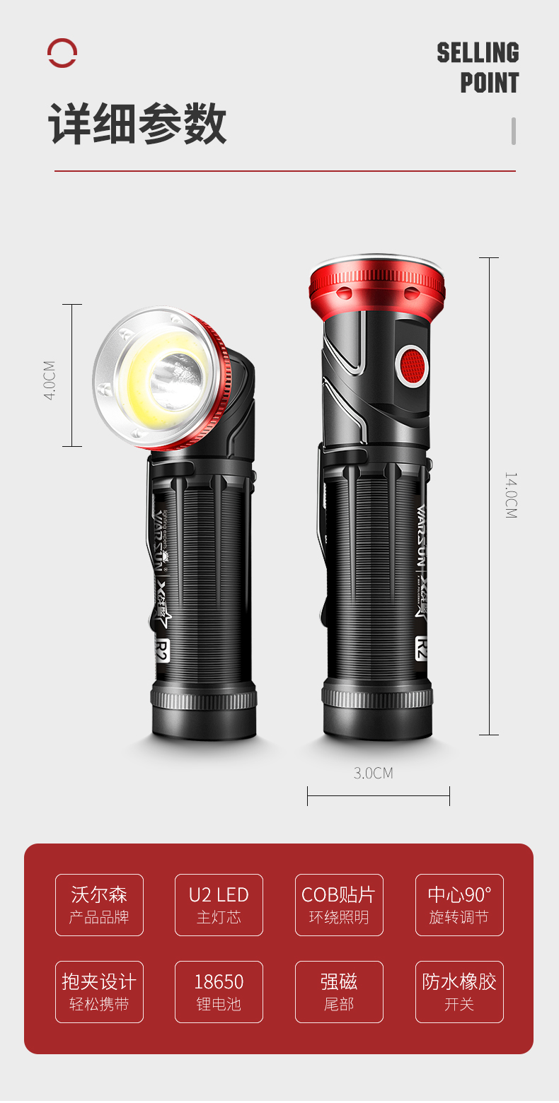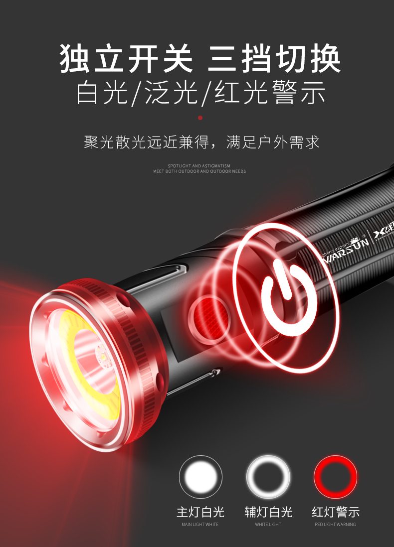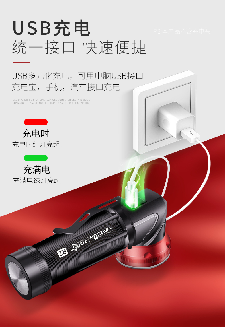 - 商品名称:Warsun沃尔森 R2手电筒强光手电工作维修灯超亮远射led可充电非氙气防水探照灯5000小