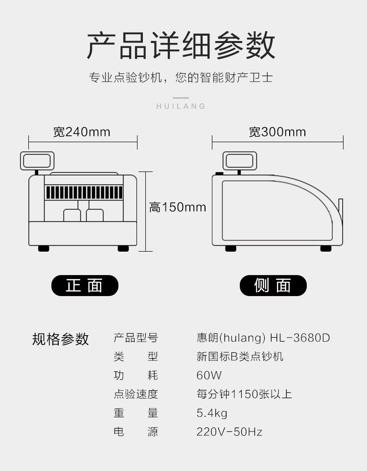- 商品名称:惠朗(huilang)2019新版人民币点钞机HL-3680D(B)银行点钞机验钞机