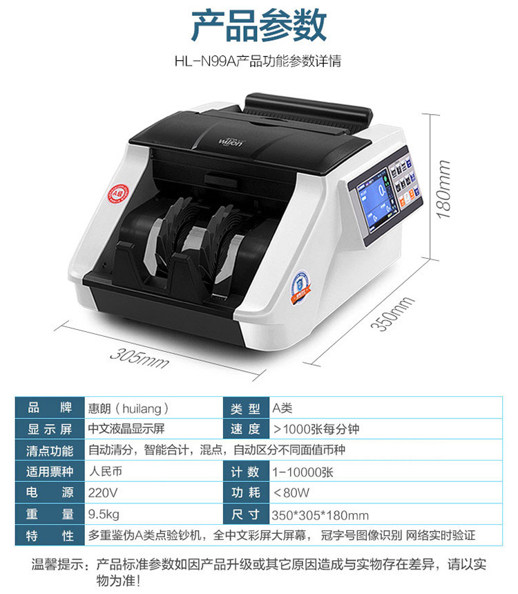 - 商品名称:惠朗(huilang)2019新版人民币点钞机验钞机N99A类点钞机验钞机冠字号图像识别