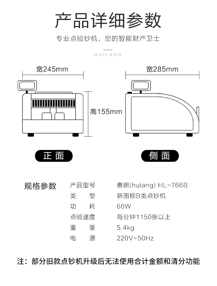 - 商品名称:惠朗(huilang)2019新版人民币点钞机验钞机HL-766 B类机新旧混点