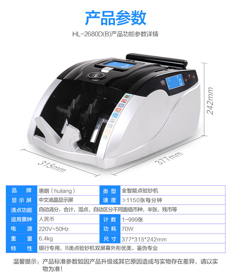 - 商品名称:惠朗(huilang)2680D(B)五磁头十二红外B类智能点钞机验钞机