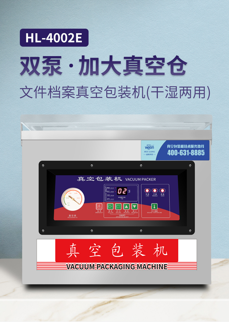 惠朗(huilang)HL-4002E商用真空包装机 政企干湿两用台式抽真空封口机 免费上门安装