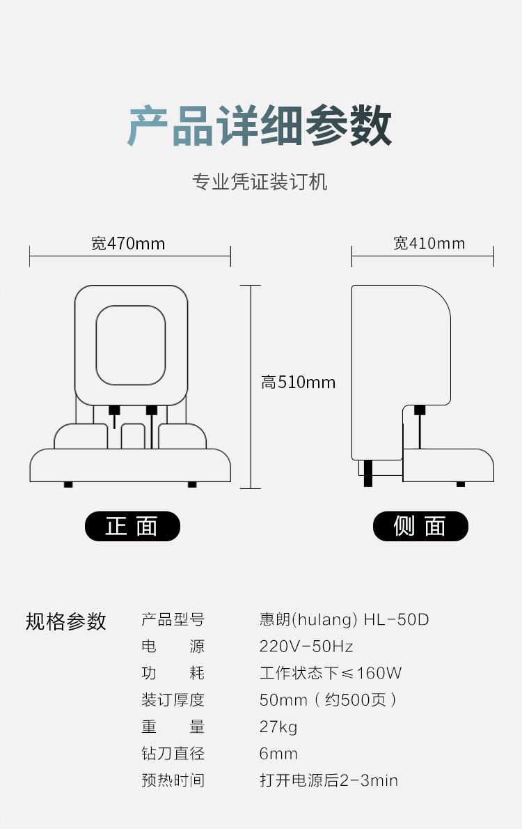 商品名称:惠朗(huilang)HL-50D自动财务凭证装订机50mm 大功率