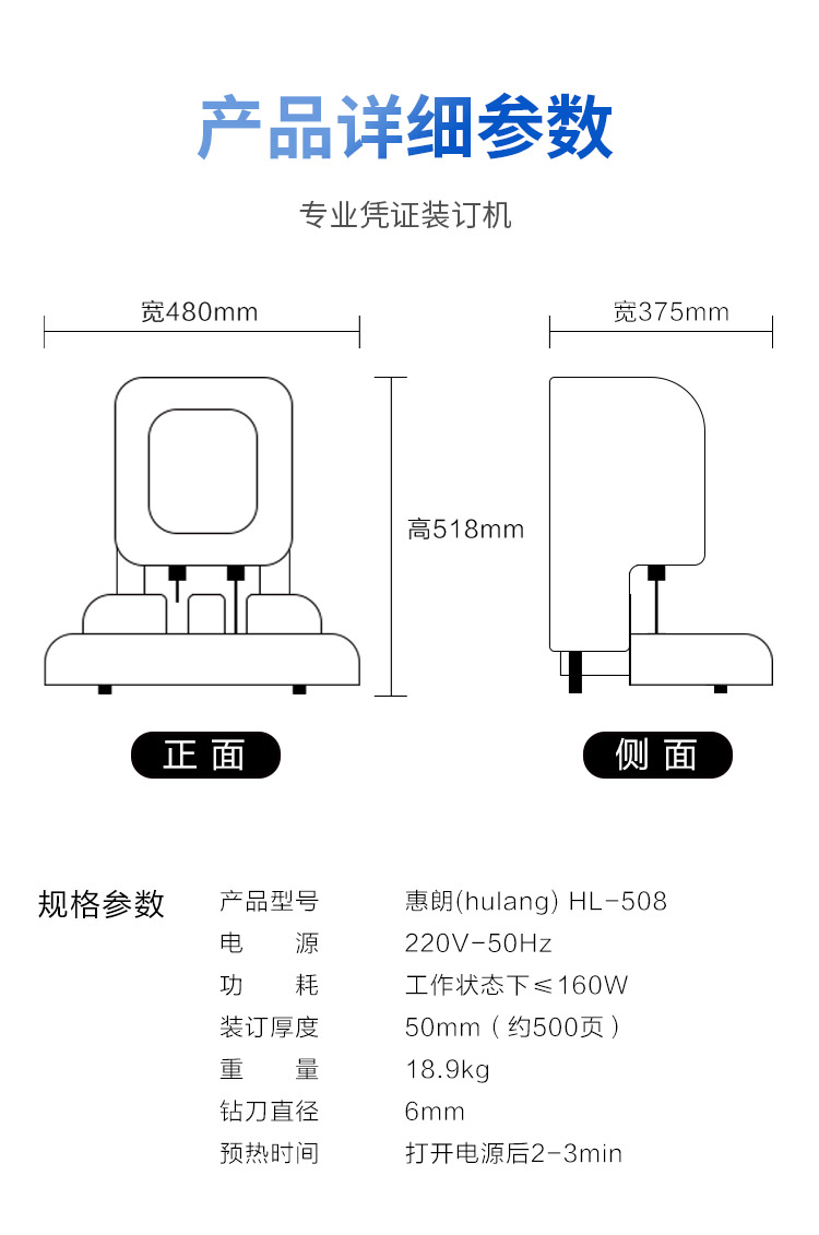 - 商品名称:惠朗(huilang)508自动财务凭证装订机50mm 激光定位