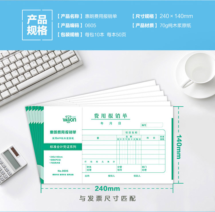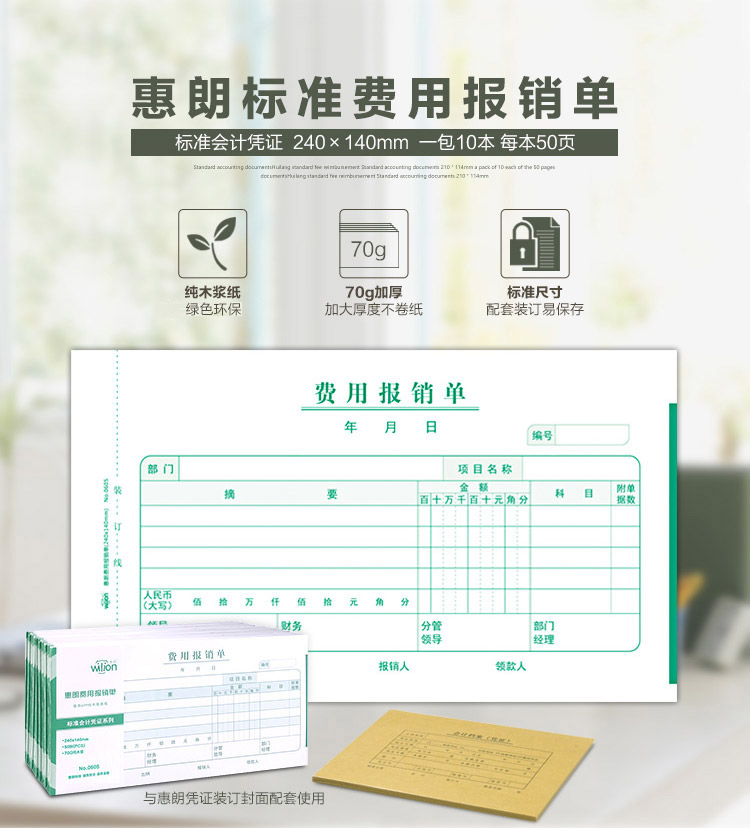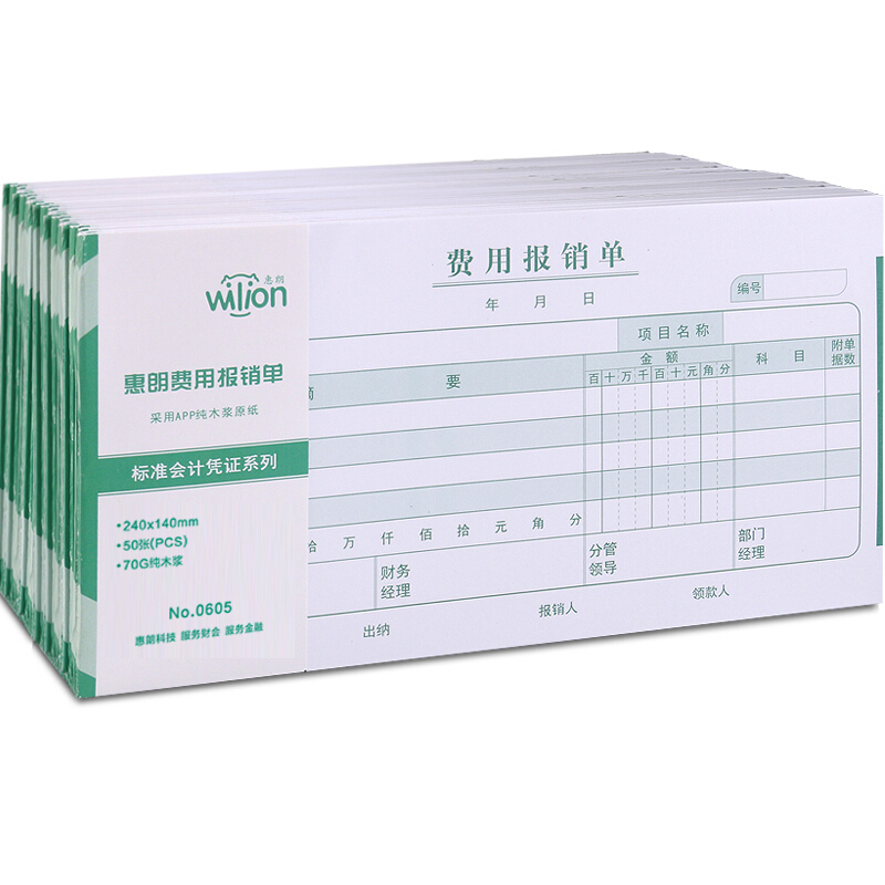 商品名称:惠朗(huilang)0605发票版费用报销单240*140mm财务单据10本/包 50页/本