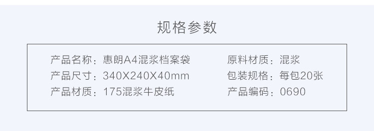 - 商品名称:惠朗(huilang)A4加厚牛皮纸档案袋 混浆文件袋资料袋20只0690
