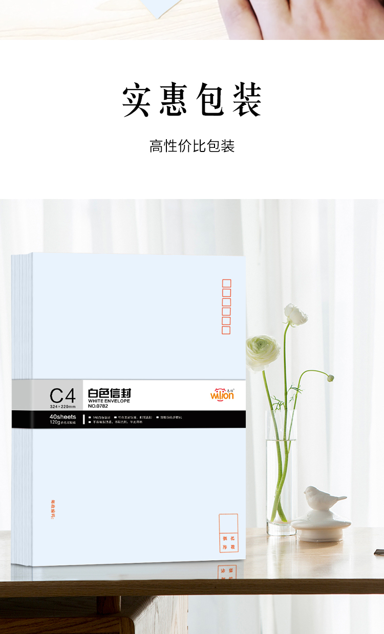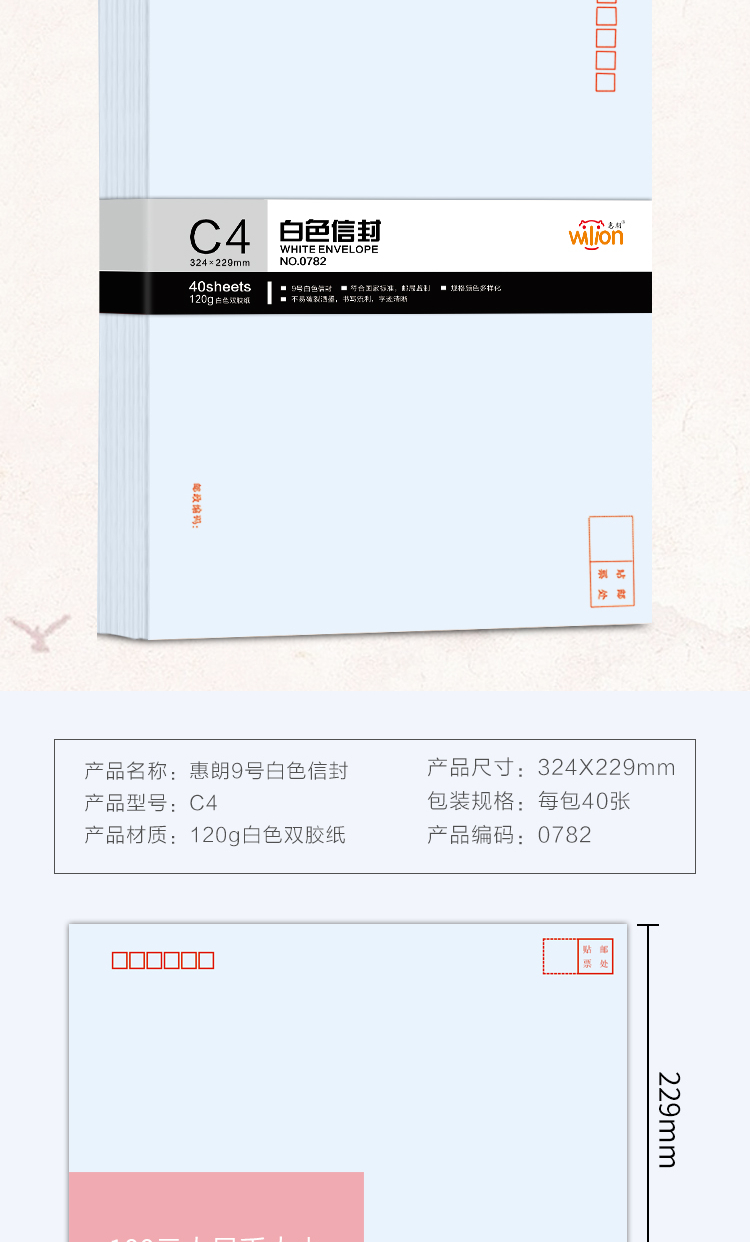 - 商品名称:惠朗(huilang)40张9号A4纸大信封 加厚120g白色邮局标准信封文件袋0782
