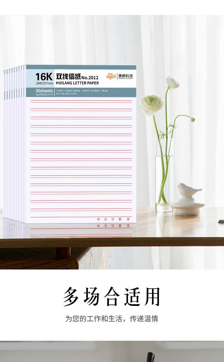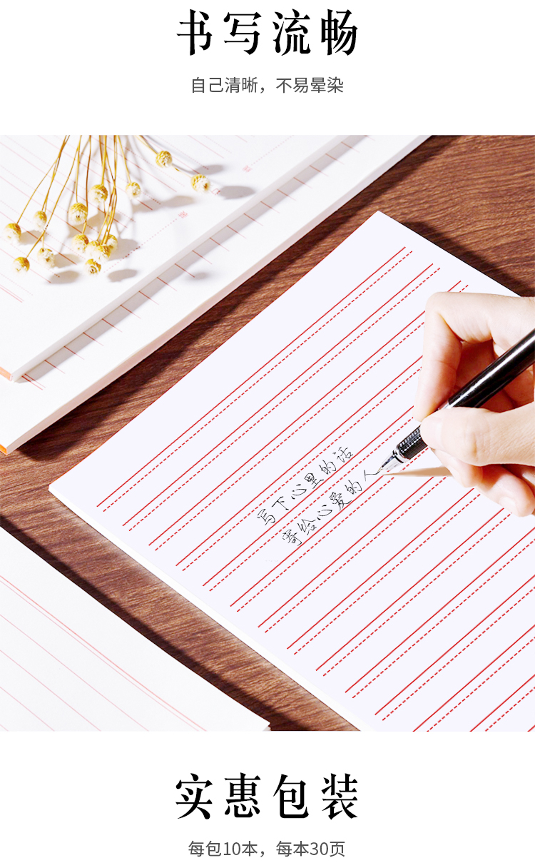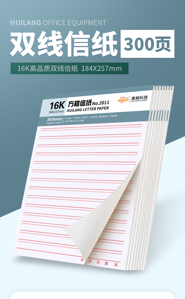 惠朗(huilang)10本16K/30张加厚双线信纸笔记本子贴胶易撕防掉作文纸草稿纸作业本2012