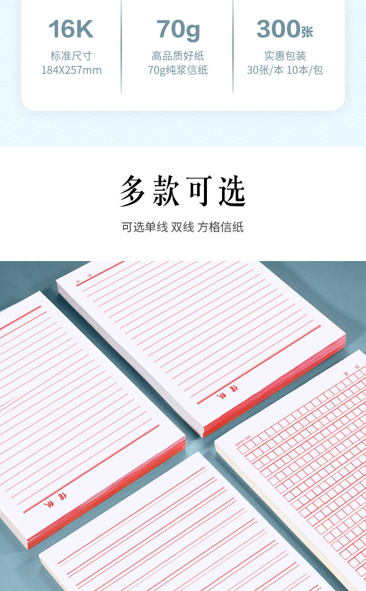 商品名称:惠朗(huilang)10本16K/30张加厚双线信纸笔记本子贴胶易撕防掉作文纸草稿纸作业本2012