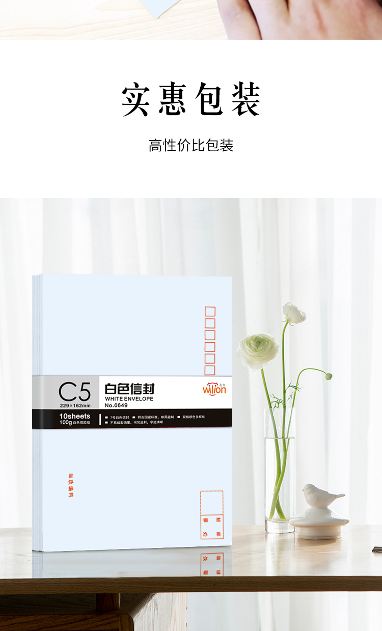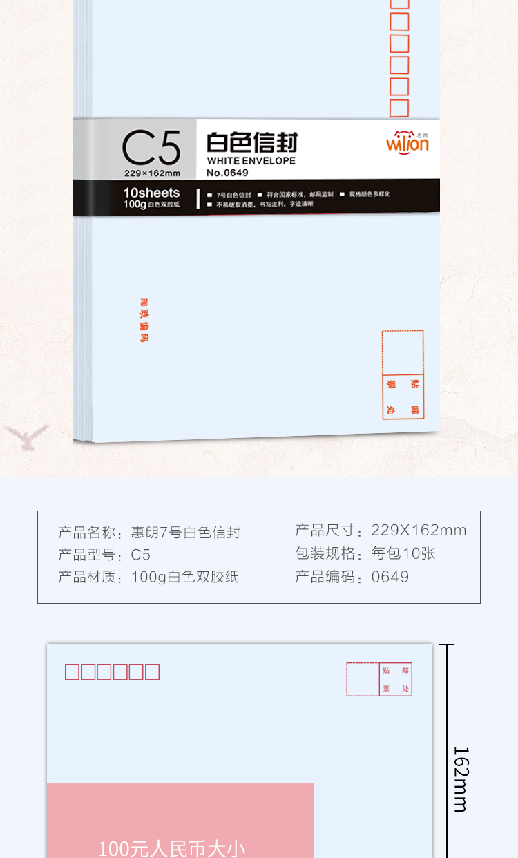 商品名称:惠朗(huilang)0649-7号白色信封 邮局标准信封10张(单包)