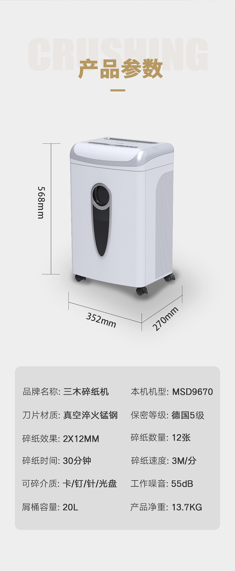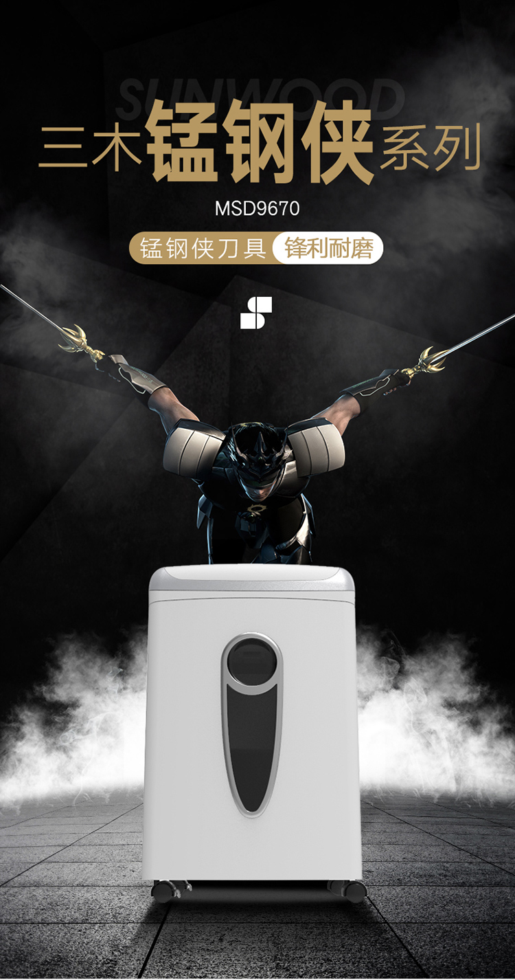 - 商品名称:三木(SUNWOOD)MSD9670锰钢侠系列碎纸机/文件粉碎机 五级保密 双入口