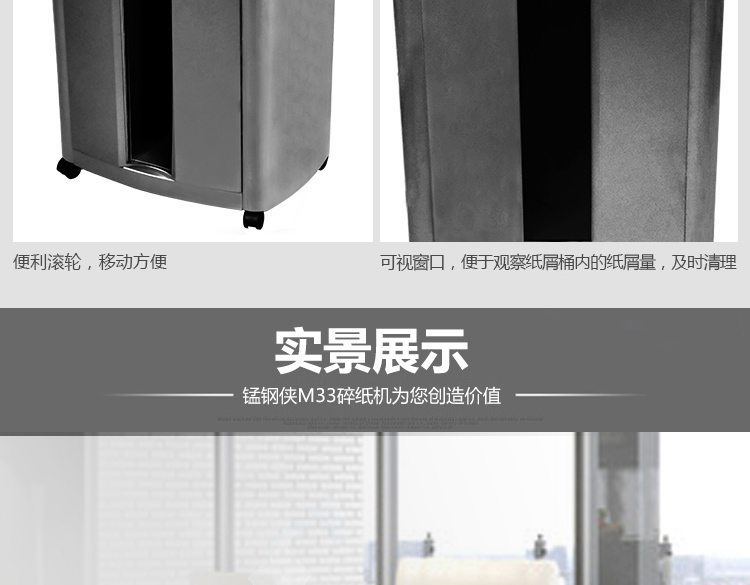 - 商品名称:三木(SUNWOOD) M33 锰钢侠系列碎纸机 四级保密35分钟连续碎纸 每分钟可碎120张A4纸