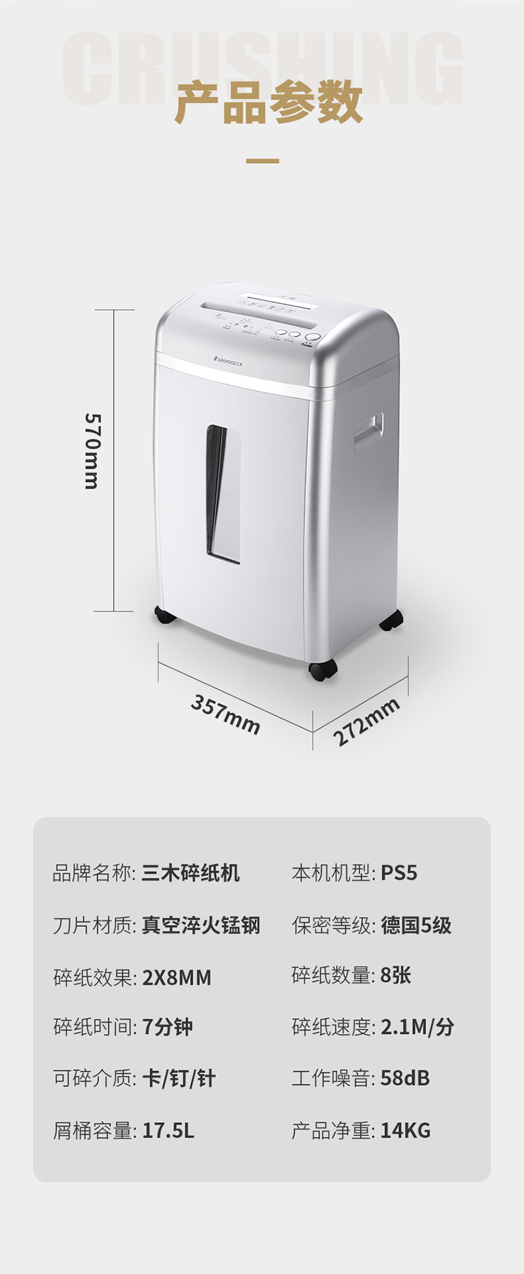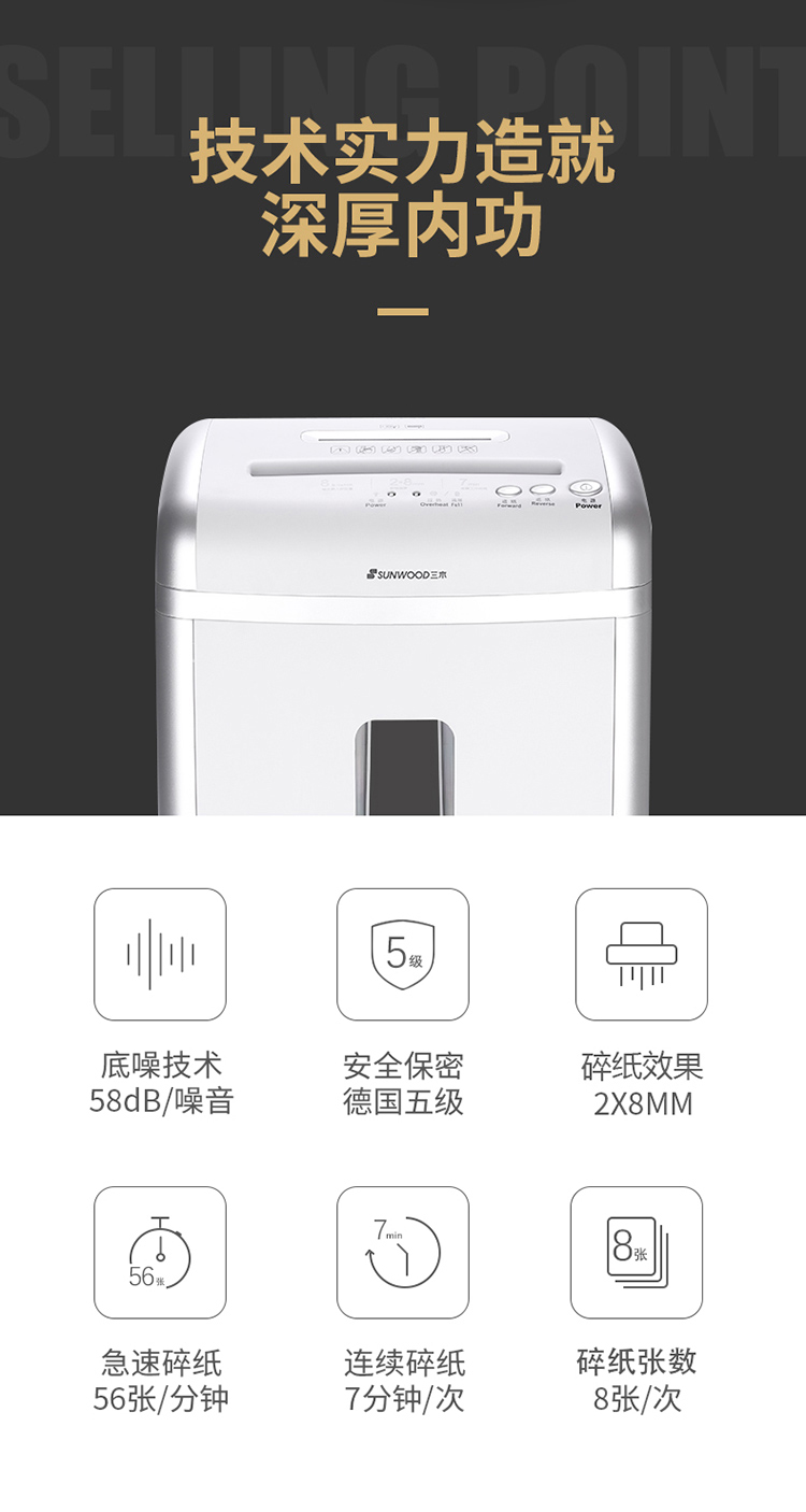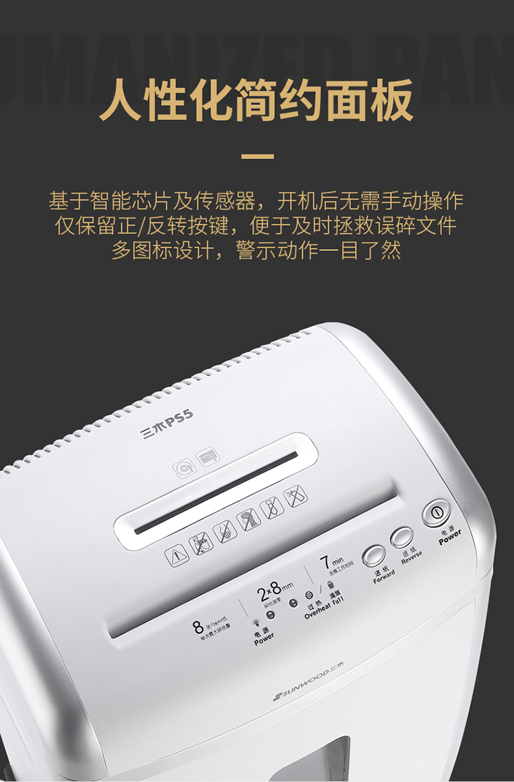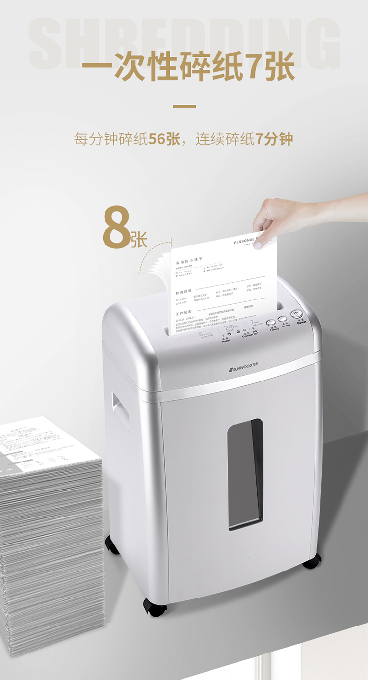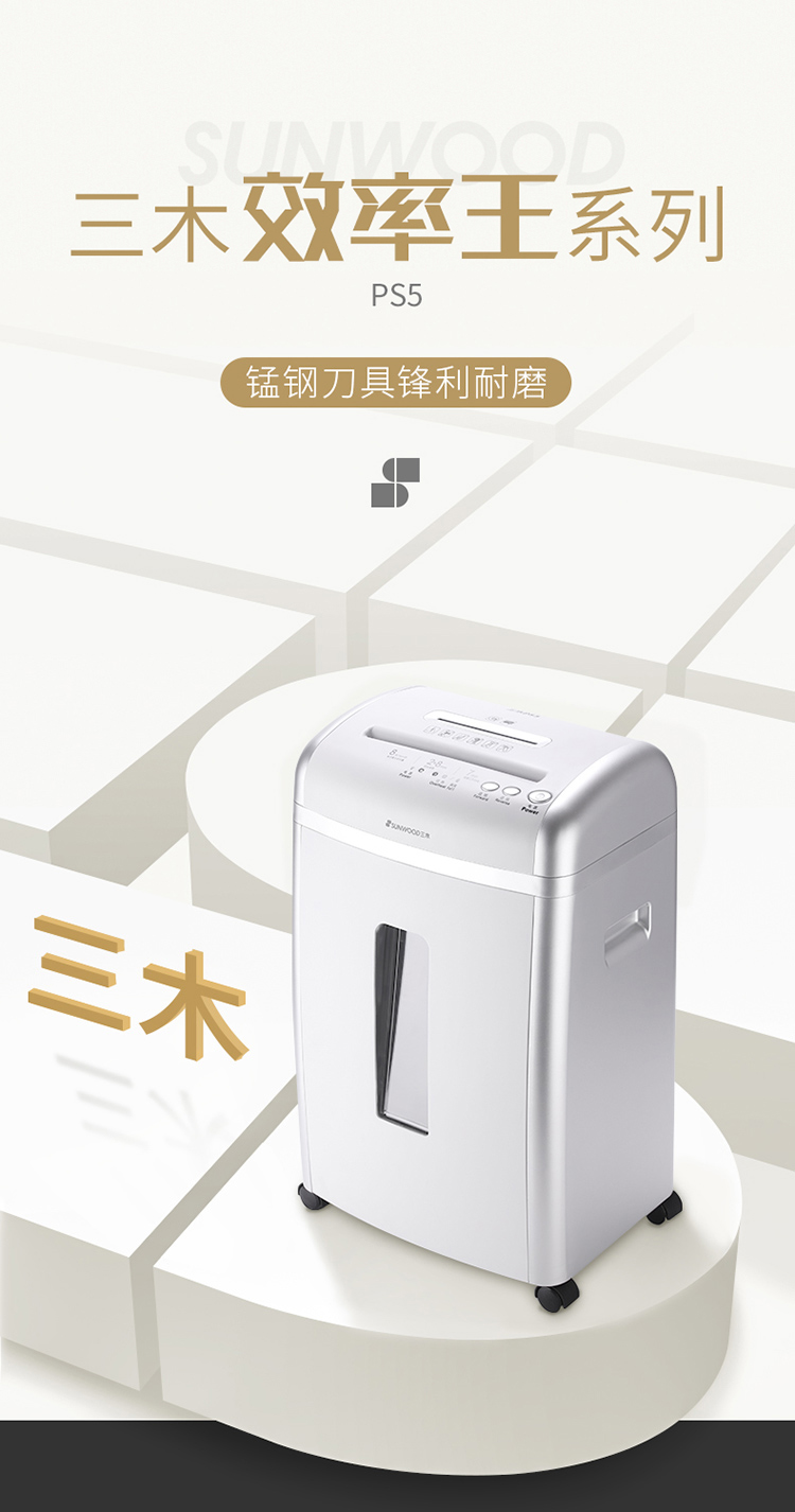 - 商品名称:三木(SUNWOOD)PS5效率王系列碎纸机 德国5级保密 2*8 连续碎纸7分钟 双入口