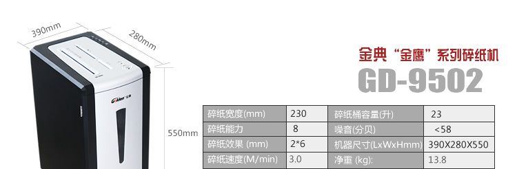 - 商品名称:金典 GD-9502 颗粒碎纸机