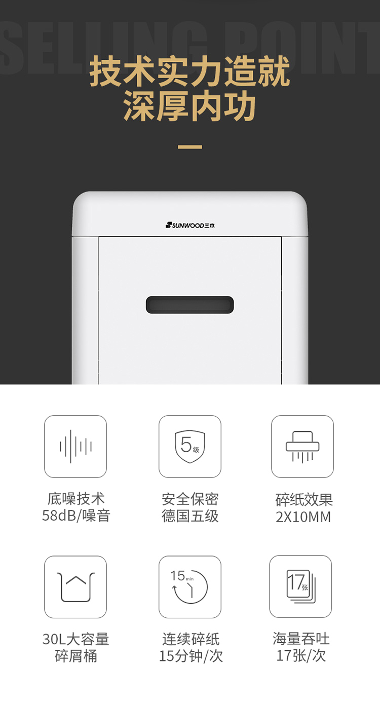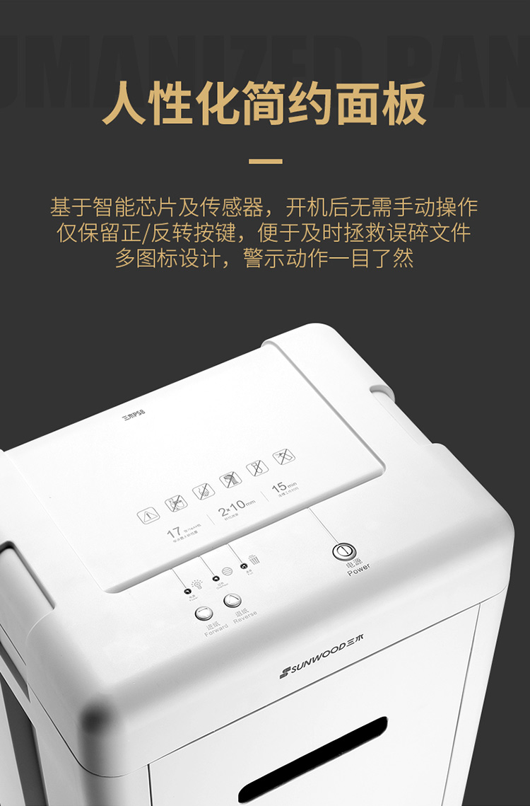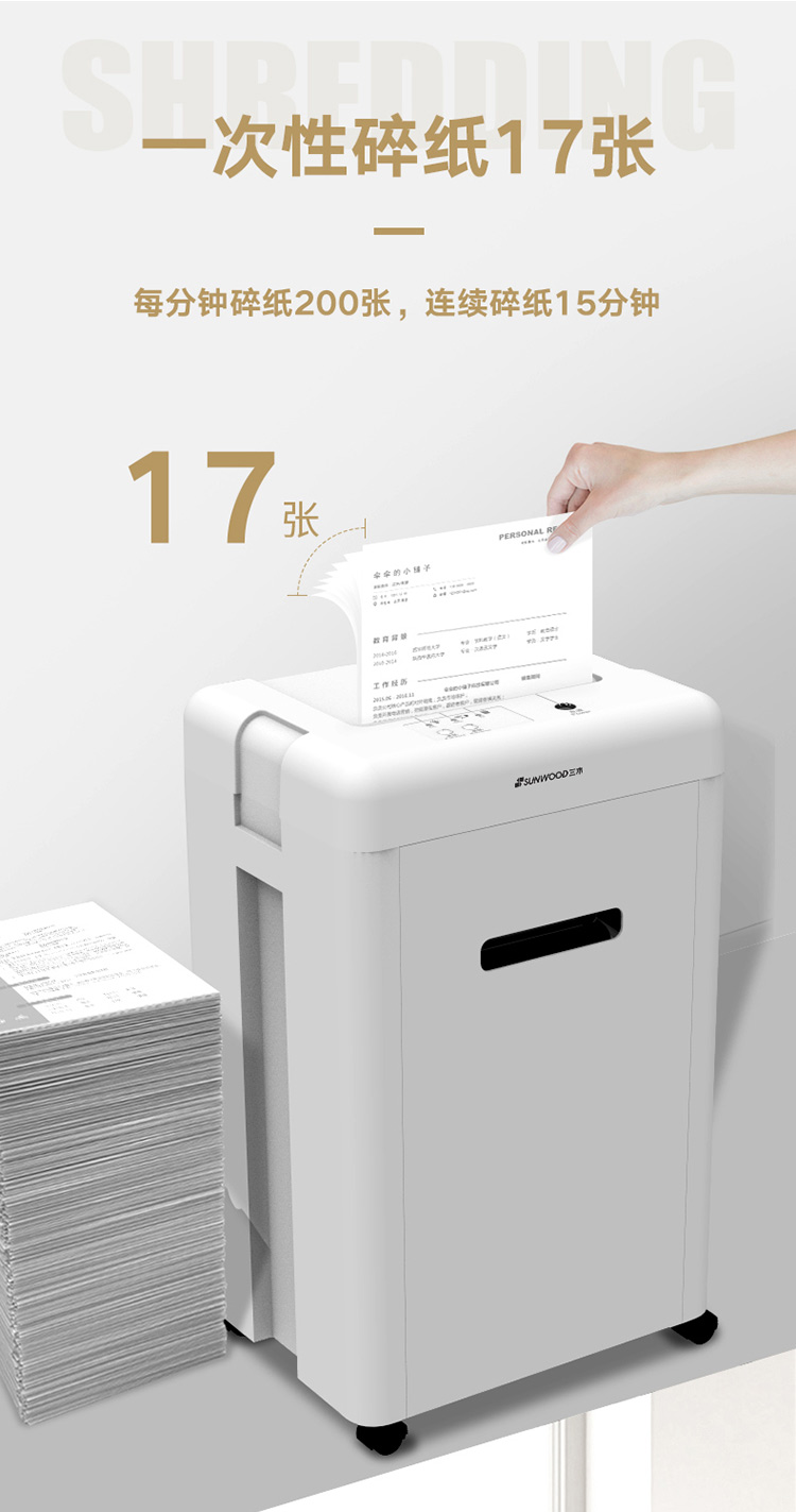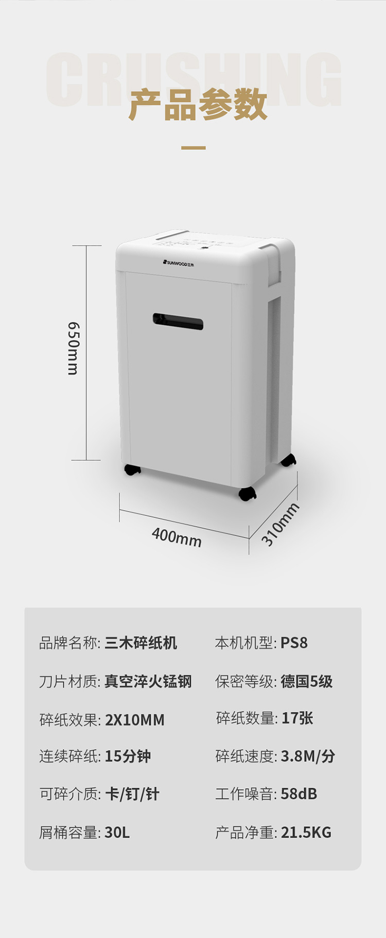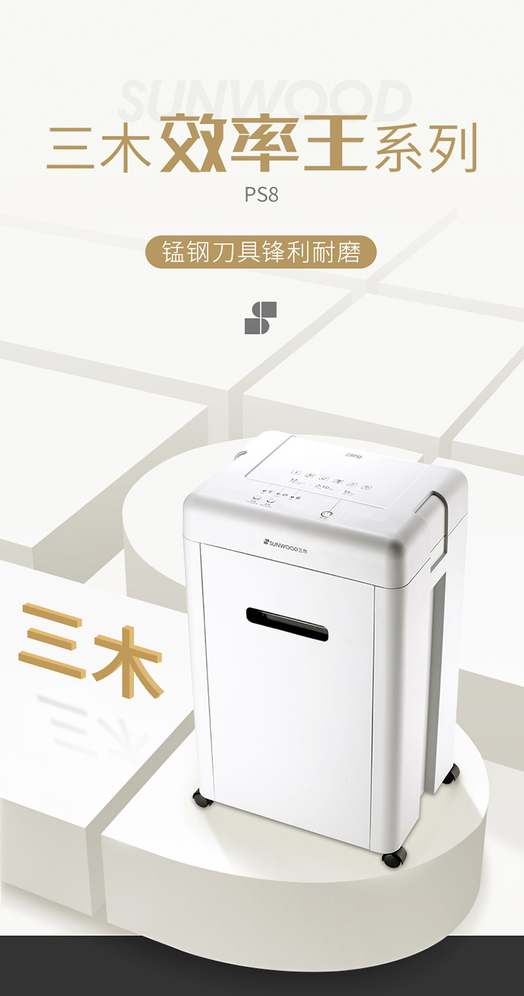 - 商品名称:三木(SUNWOOD)PS8效率王系列碎纸机 德国五级保密 大容量高速静音文件粉碎机