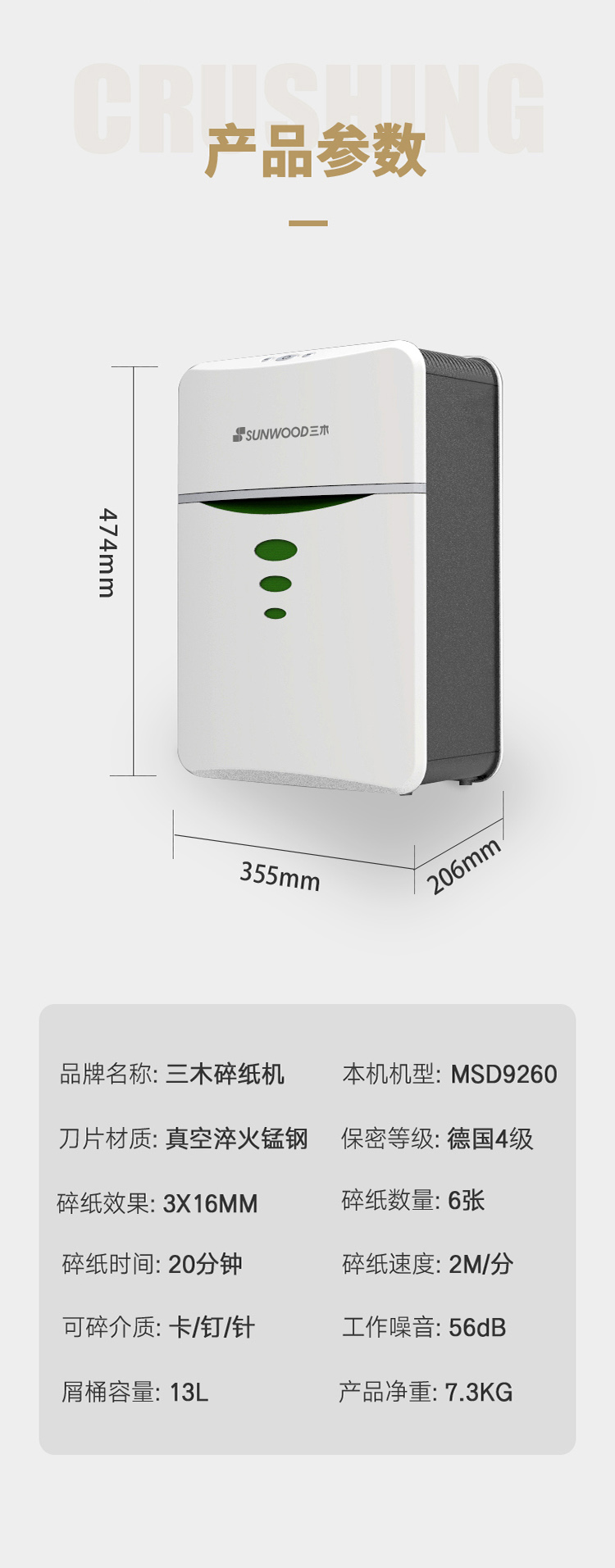 商品名称:三木(SUNWOOD)MSD9260锰钢侠系列碎纸机/文件粉碎机 五级保密