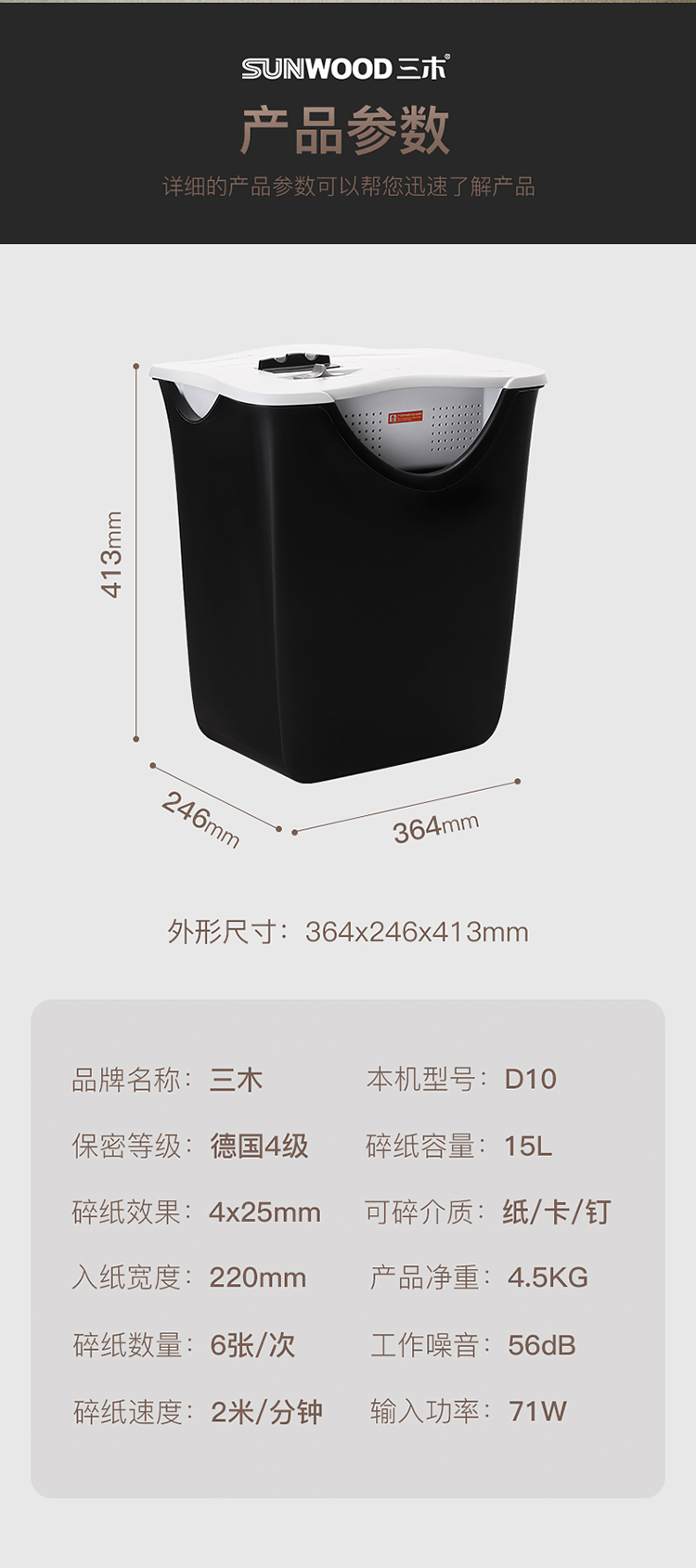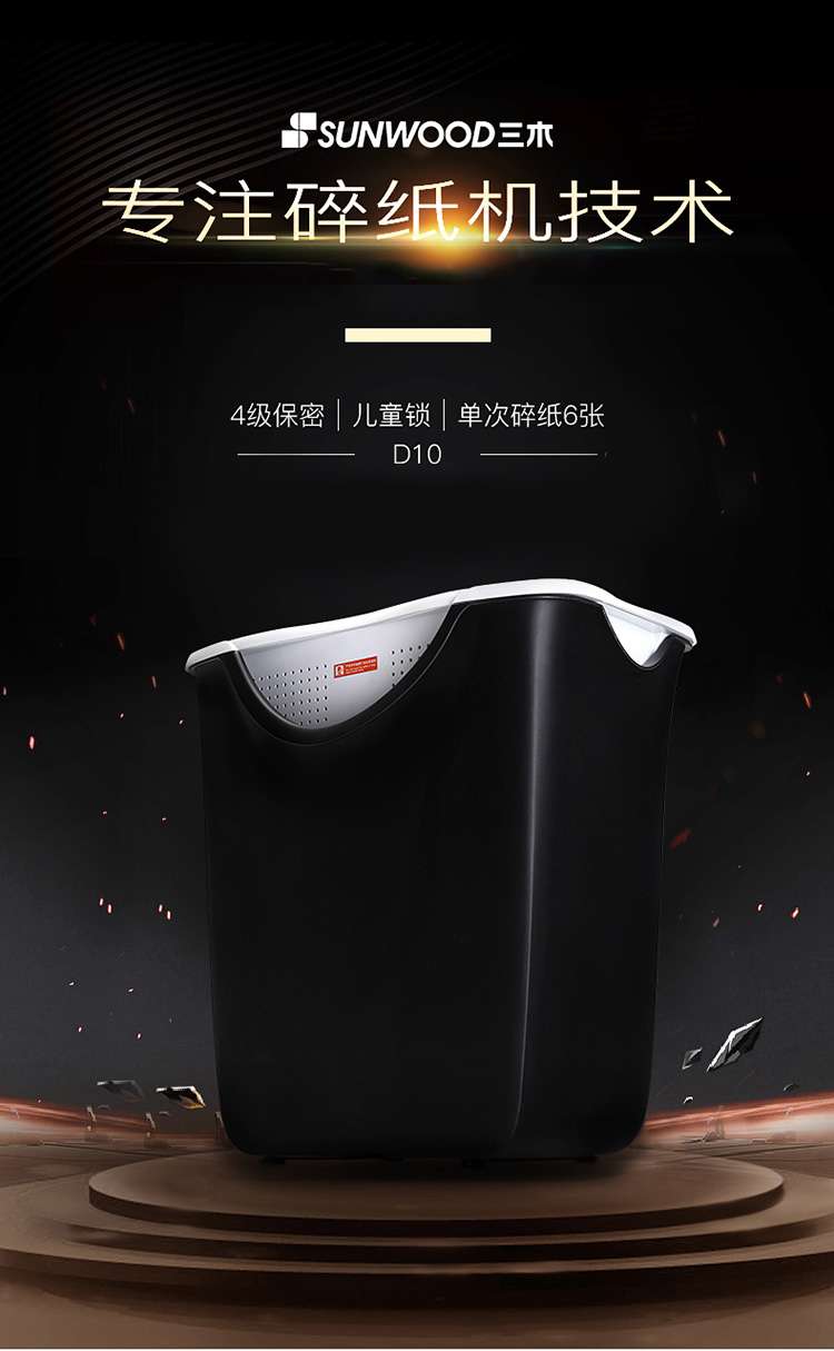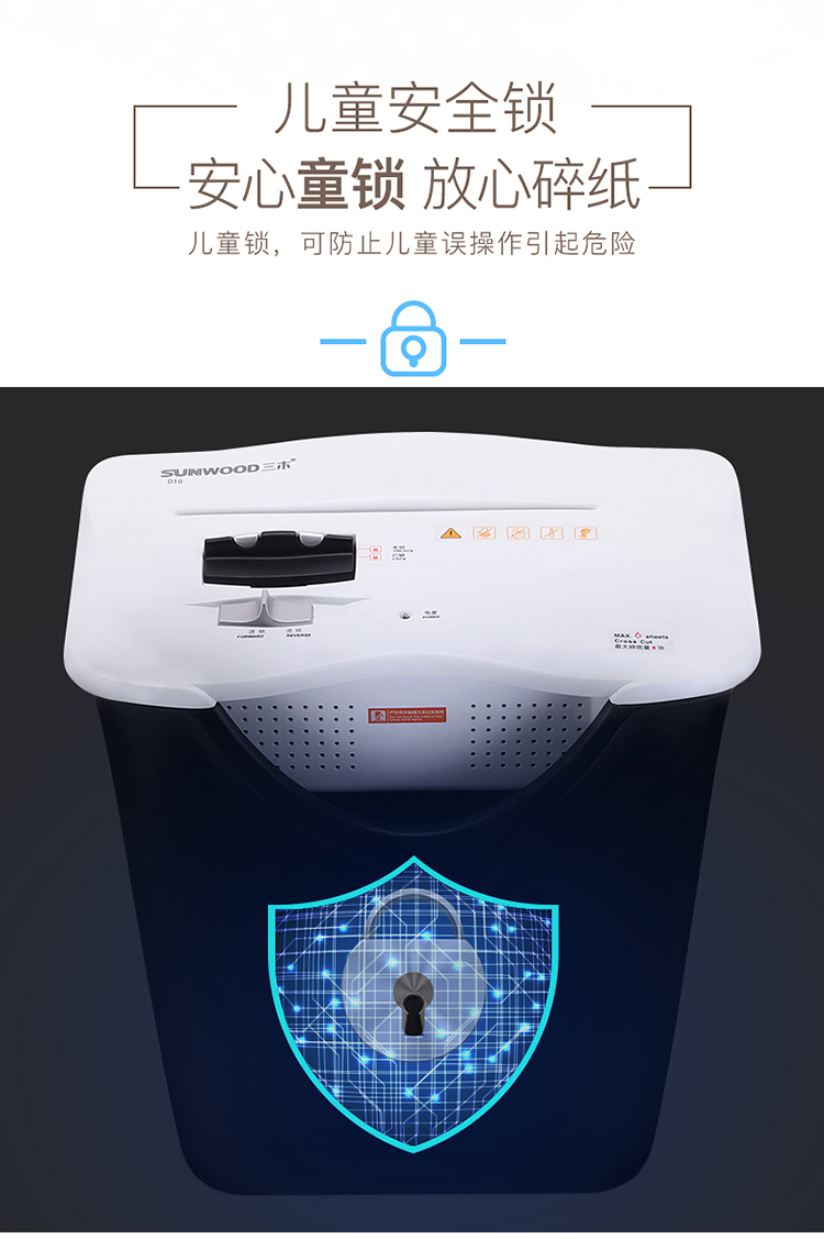 - 商品名称:三木(SUNWOOD) D10 家用4级保密碎纸机/文件粉碎机 创新儿童安全锁 可碎纸/钉/卡