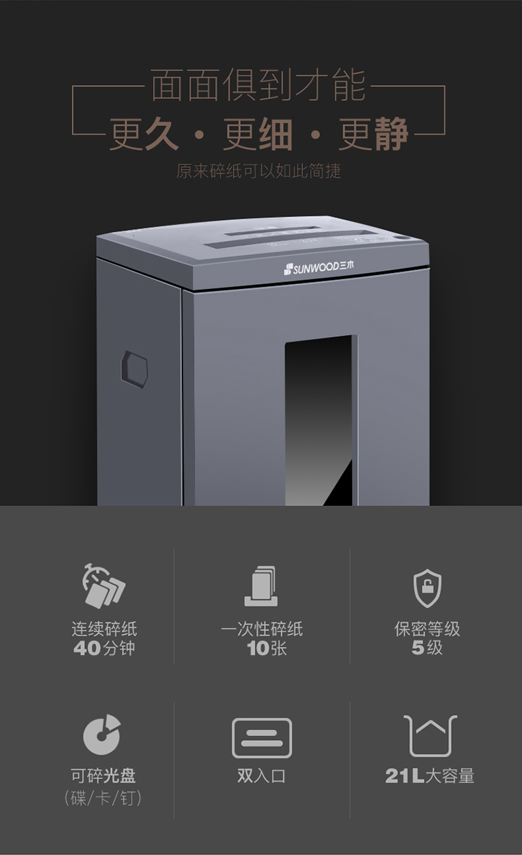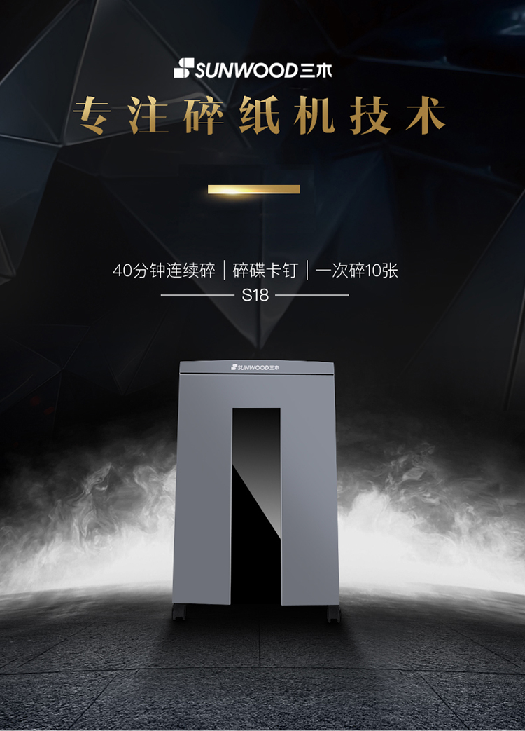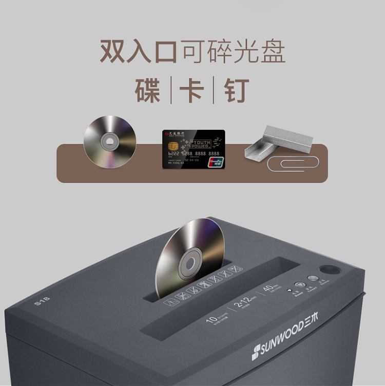 - 商品名称:三木(SUNWOOD)S18 大容量40分钟五级保密办公碎纸机(可碎纸/卡/光盘)