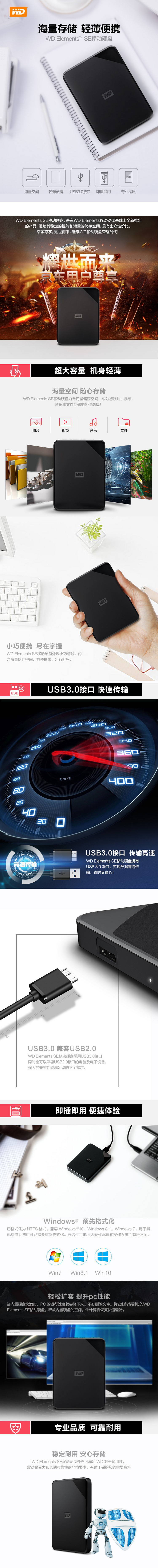 商品名称:西部数据(WD)WDBEPK0010BBK 2.5英寸1TB移动硬盘 USB3.0移动硬盘Elements SE 新元素系列