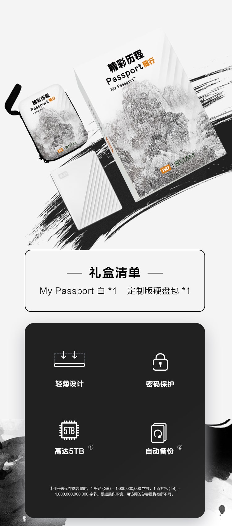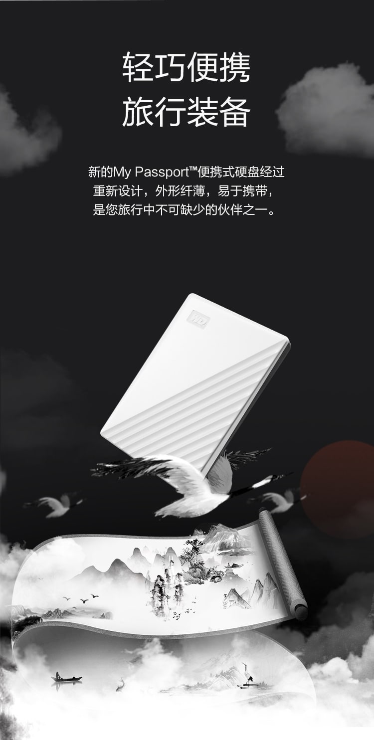 - 商品名称:西部数据(WD)4TB USB3.0移动硬盘My Passport随行版【礼盒套装】2.5英寸白色(送定制款硬盘包)