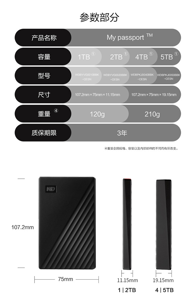 - 商品名称:西部数据(WD)4TB USB3.0移动硬盘My Passport随行版 2.5英寸 蓝色 2年存储设备数据恢复服务