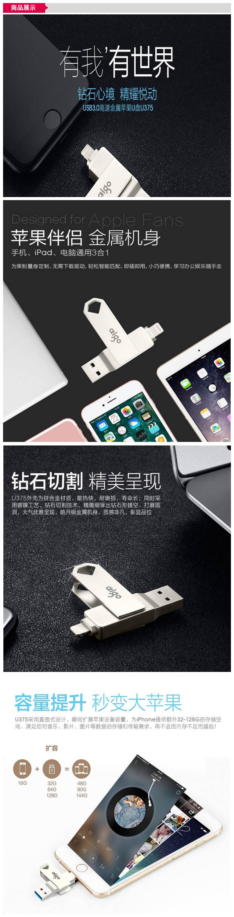 - 商品名称:爱国者 U375-32G苹果U盘银32G/USB3.0/手机电脑两用 (单位:个)