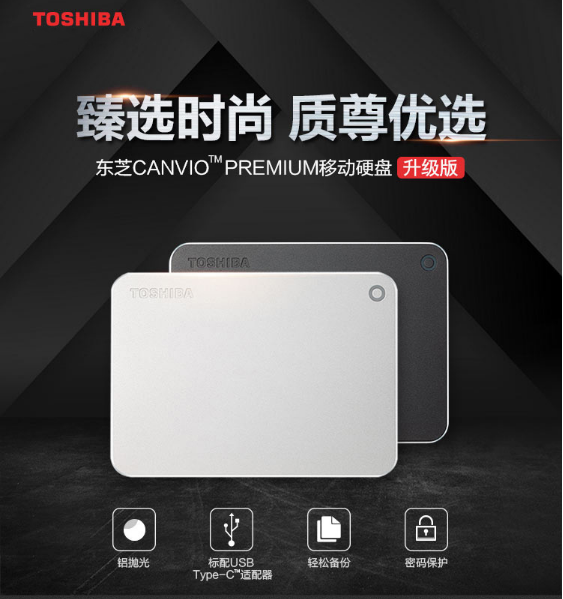 - 商品名称:东芝(TOSHIBA) 2TB USB3.0 移动硬盘 Premium系列 2.5英寸 兼容Mac 高端商务 Type-C转换器 金属材质 尊贵银