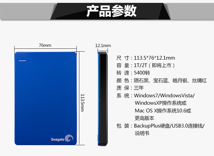 - 商品名称:希捷(Seagate)Backup Plus睿品(升级版)1T2.5英寸USB3.0陨石黑(STDR1000300)