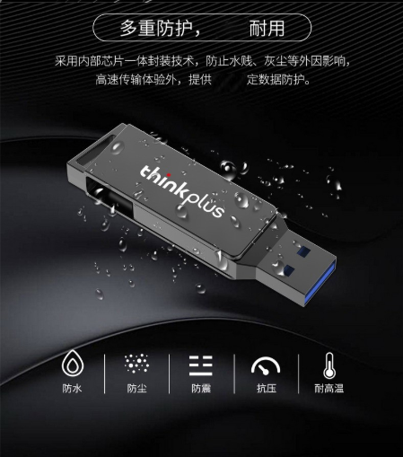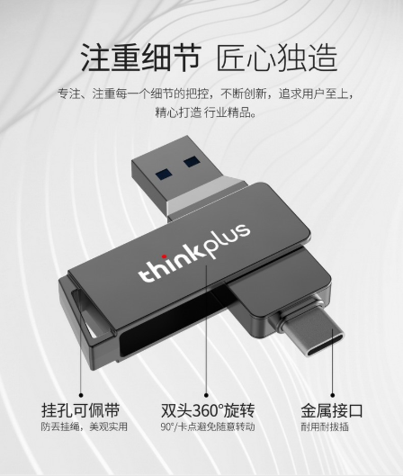联想(Lenovo)Thinkplus MU251 U盘 128G Type-c+USB3.0双接口闪存盘 旋转头