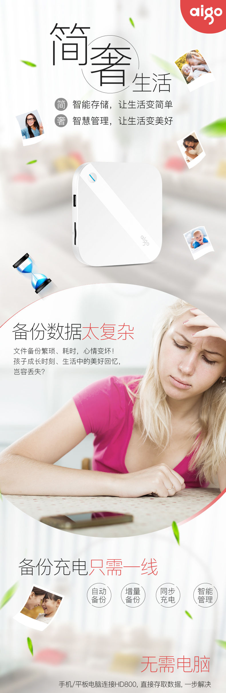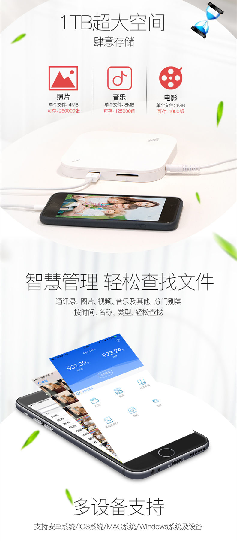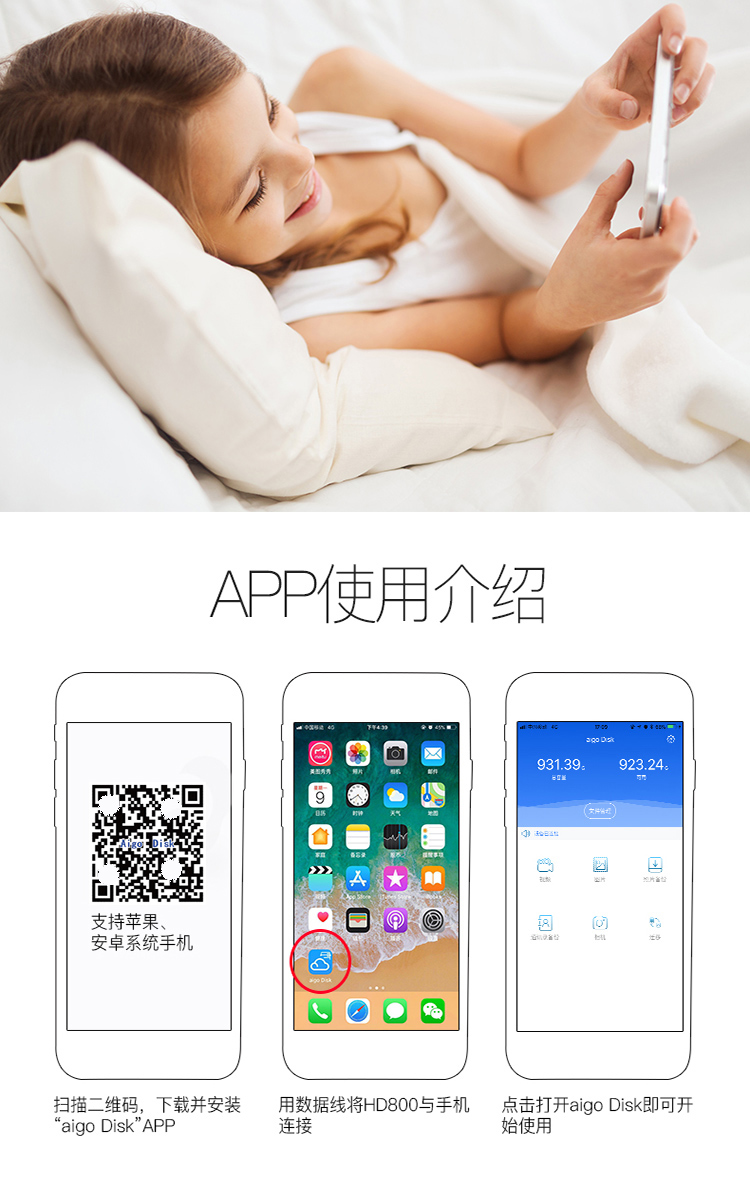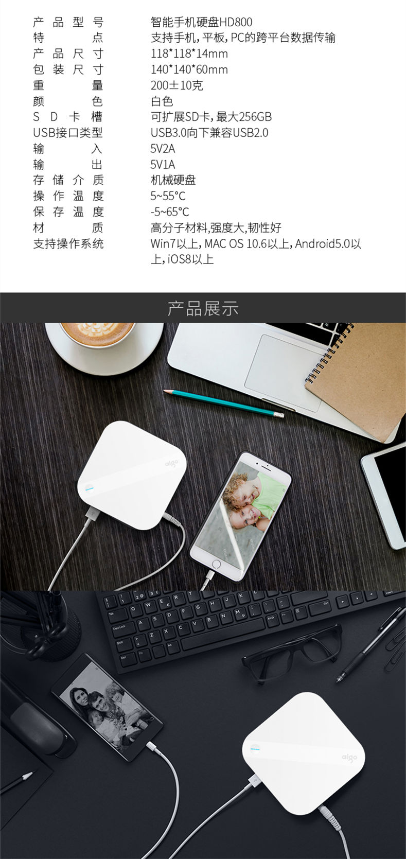 商品名称:爱国者(aigo)1TB USB3.0 智能移动硬盘 HD800 白色 手机硬盘 支持苹果 安卓 手机平板自动备份 SD卡扩展