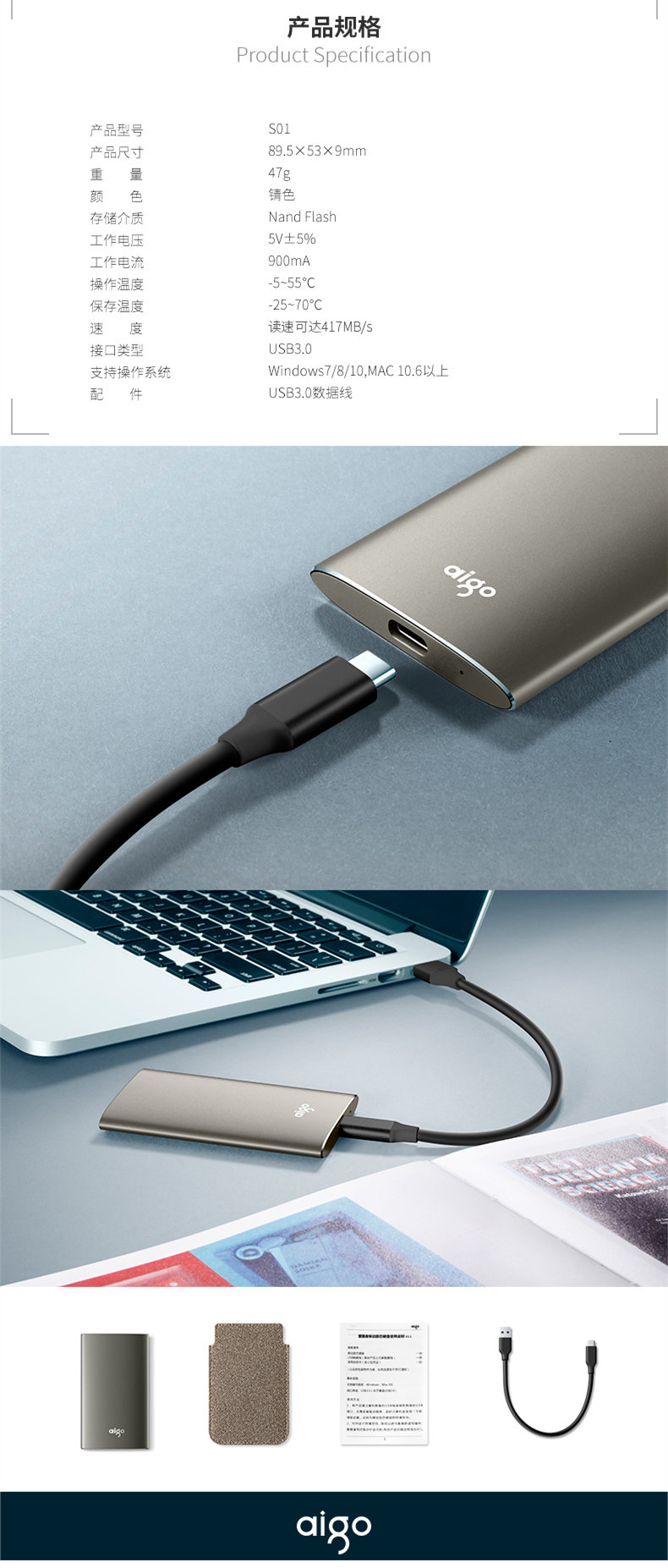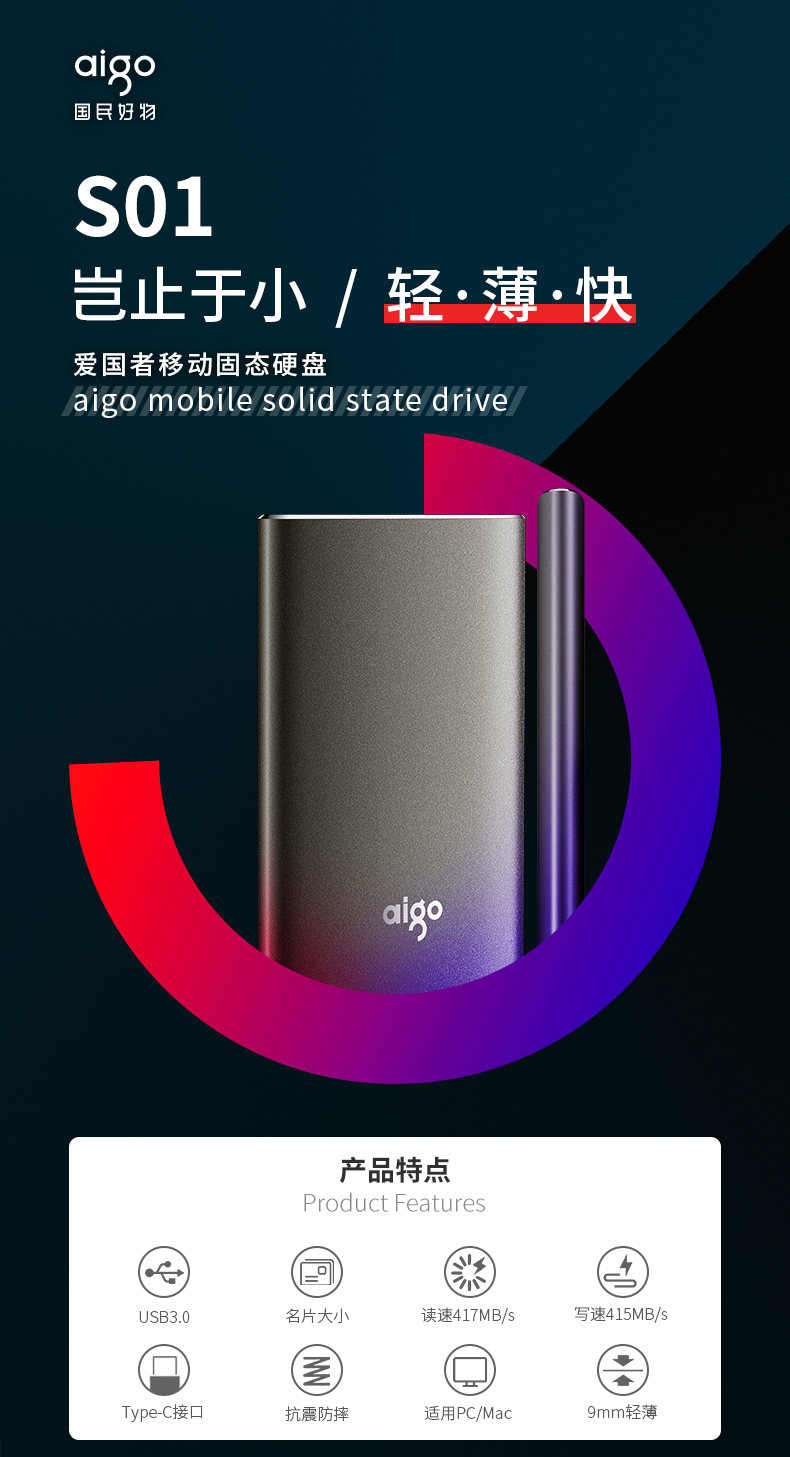 - 商品名称:爱国者(aigo)480GB USB3.0 移动固态硬盘(PSSD)S01 金属抗震防摔 名片大小