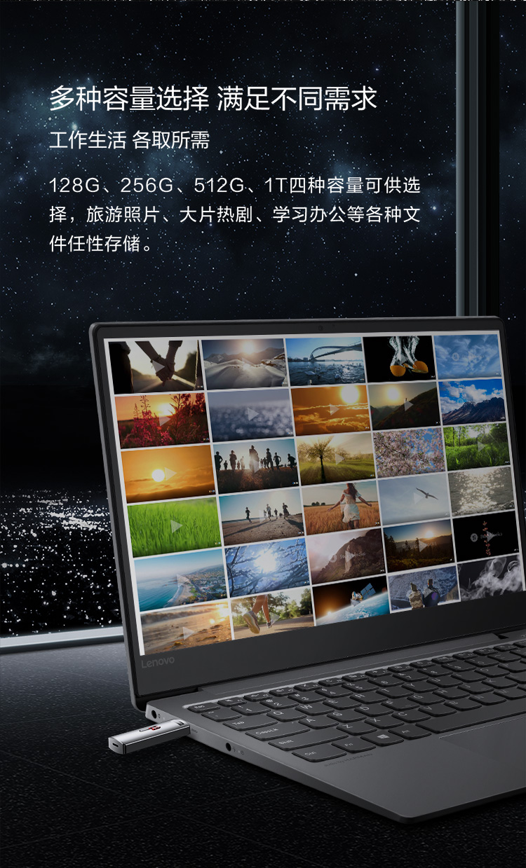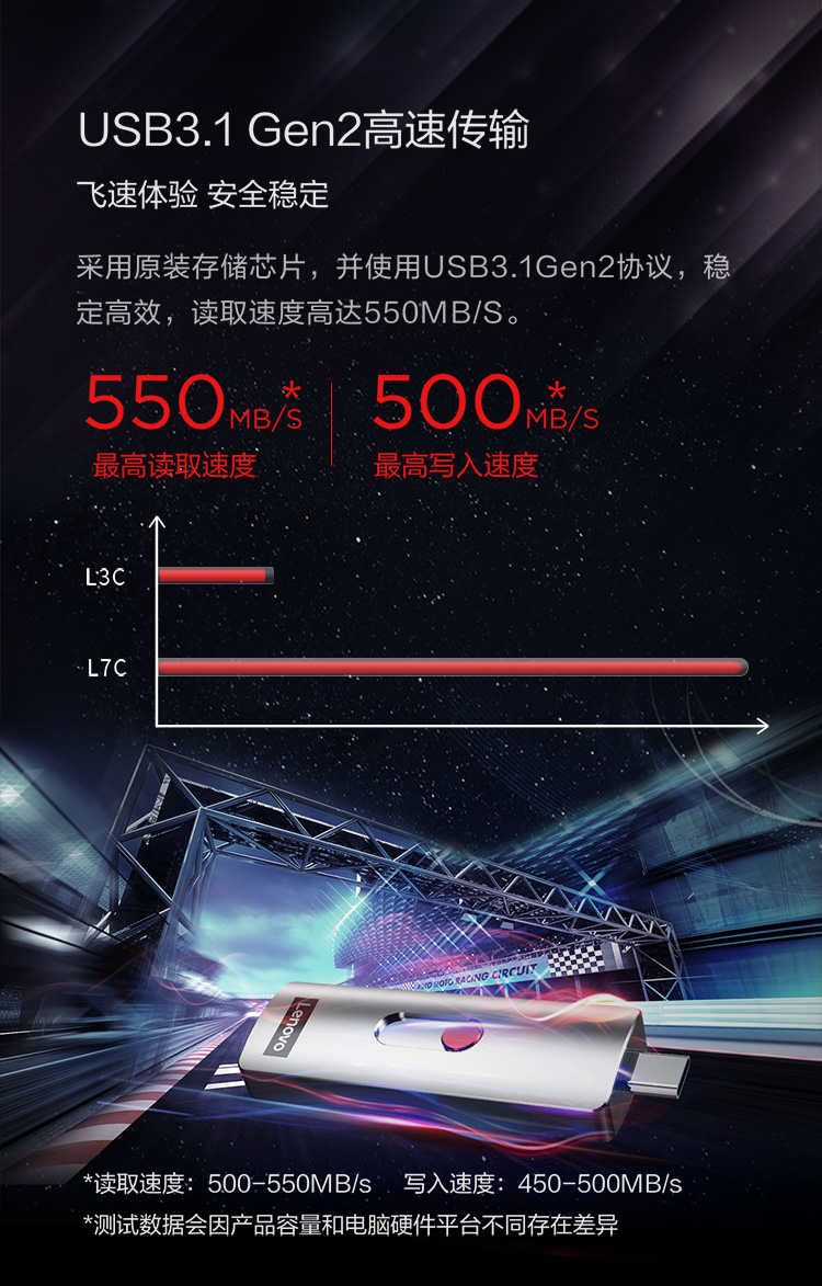 联想(Lenovo)固态U盘 128GB Type-C USB3.1黑色 读速550MB/s 写500MB/s L7C手机U盘移动固态硬盘般传输