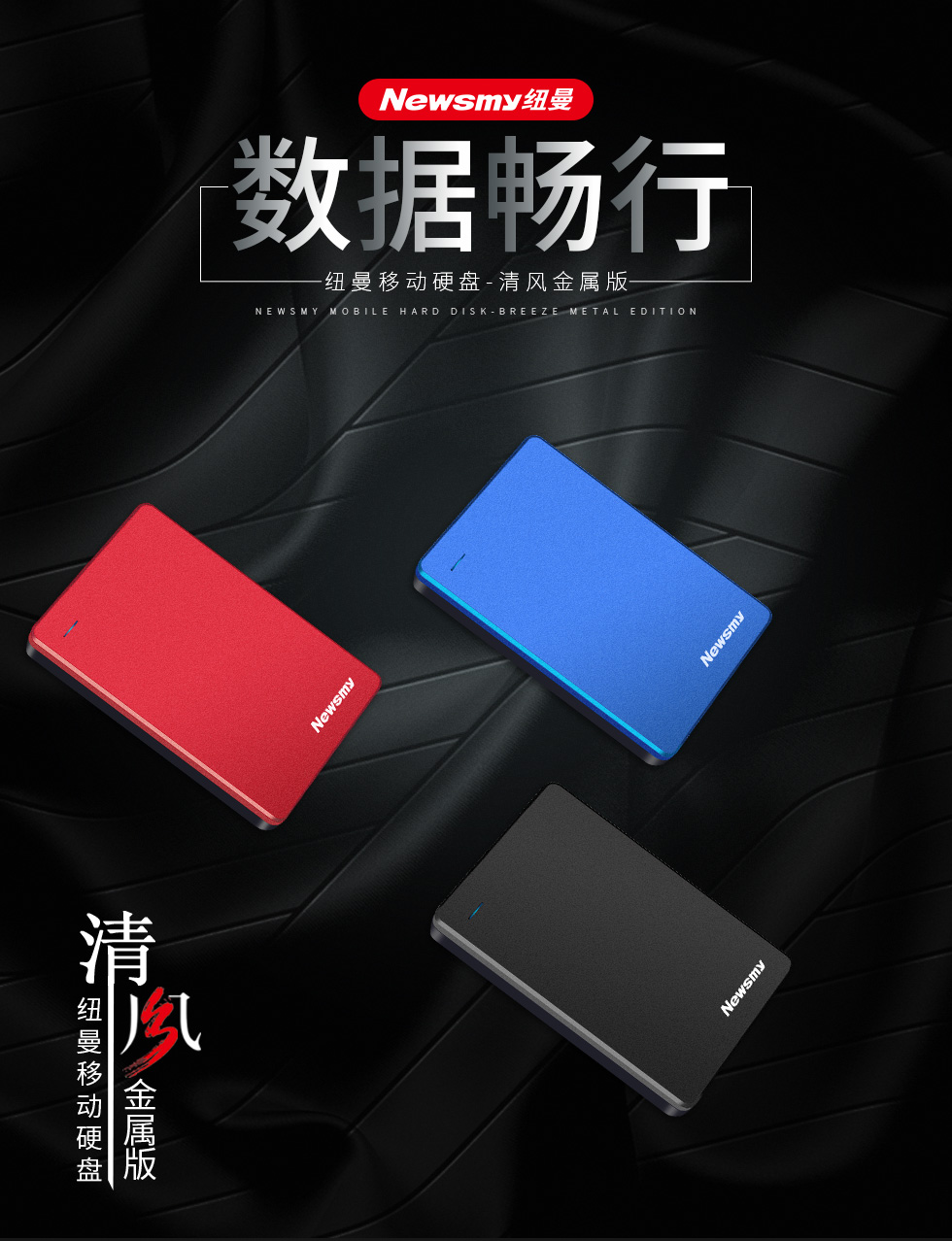 纽曼(Newsmy)1TB USB3.0 移动硬盘 清风金属版 2.5英寸 黎明黑 金属散热防划防磁防震 海量数据存储备份