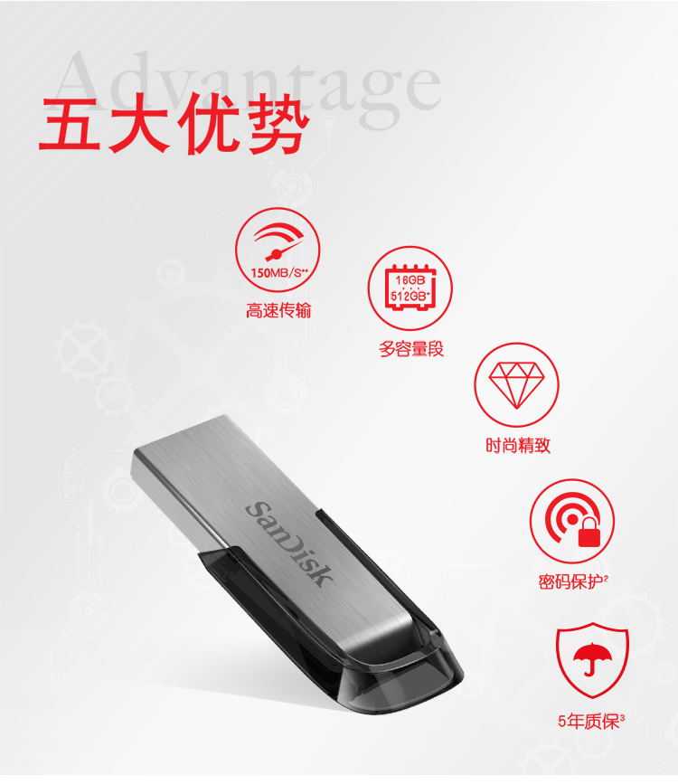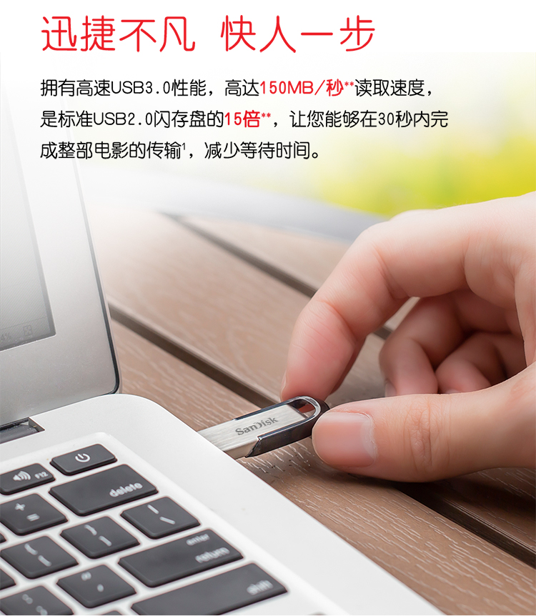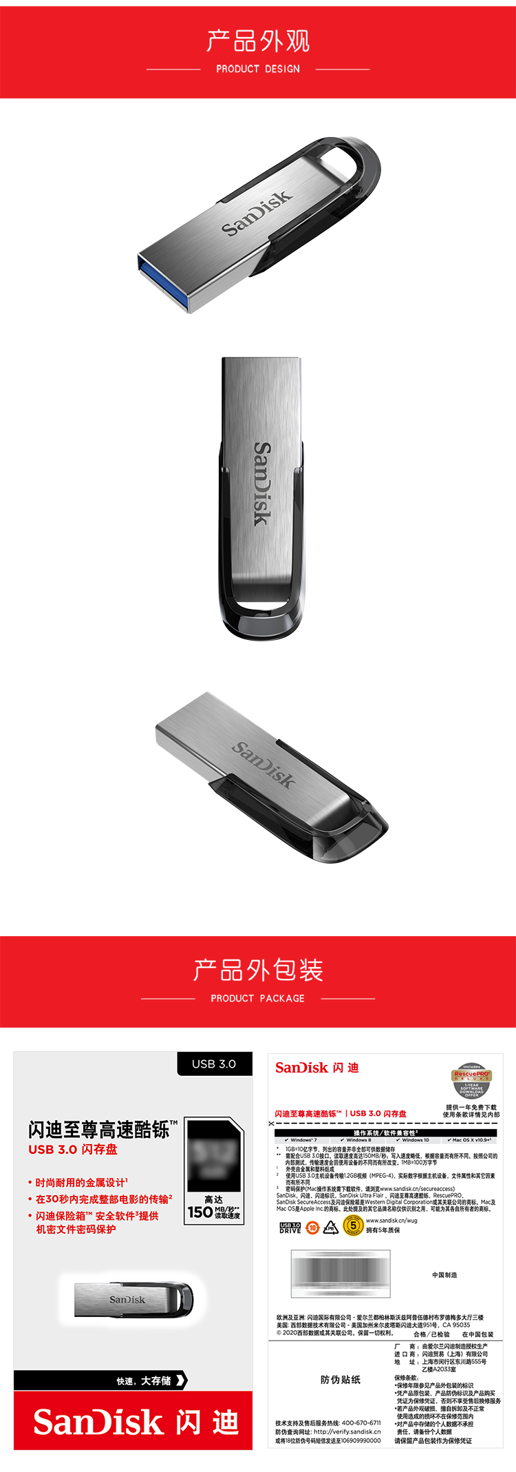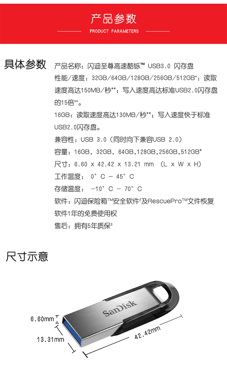 - 商品名称:闪迪(SanDisk)16GB USB3.0 U盘 CZ73酷铄 银色 读速130MB/s 金属外壳 内含安全加密软件