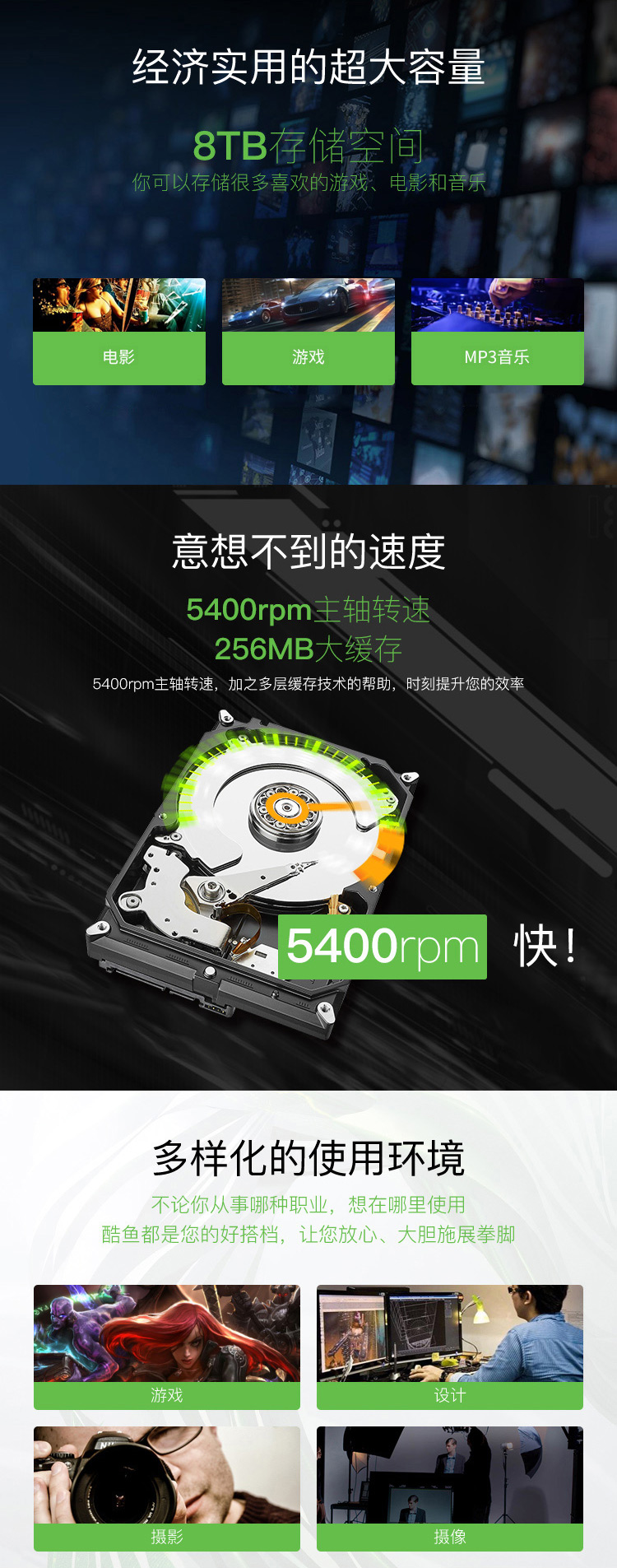 希捷(Seagate)8TB 256MB 5400RPM 台式机机械硬盘 SATA接口 希捷酷鱼BarraCuda系列(ST8000DM004)