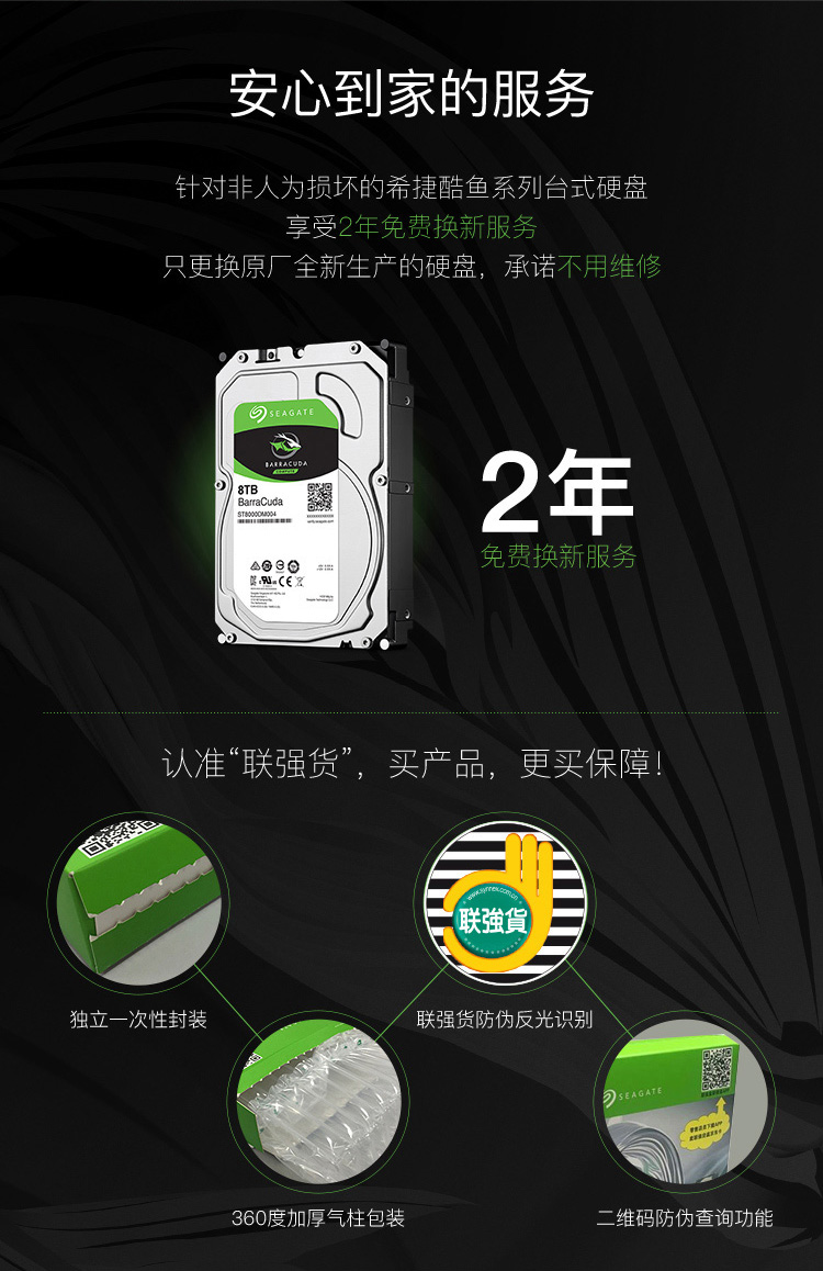 商品名称:希捷(Seagate)8TB 256MB 5400RPM 台式机机械硬盘 SATA接口 希捷酷鱼BarraCuda系列(ST8000DM004)